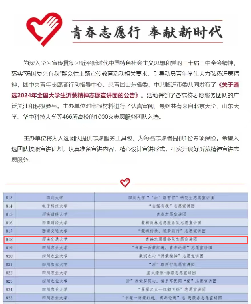 同时,为深入学习宣传贯彻习近平新时代中国特色社会主义思想和党的二十届三中全会精神,落实“强国复兴有我”群众性主题宣传教育活动相关要求,引导动员青年员工大力弘扬沂蒙精神,团中央青年志愿者行动指导中心、共青团山东省委、中共临沂市委面向全国高校遴选2024年全国老员工沂蒙精神志愿宣讲团。