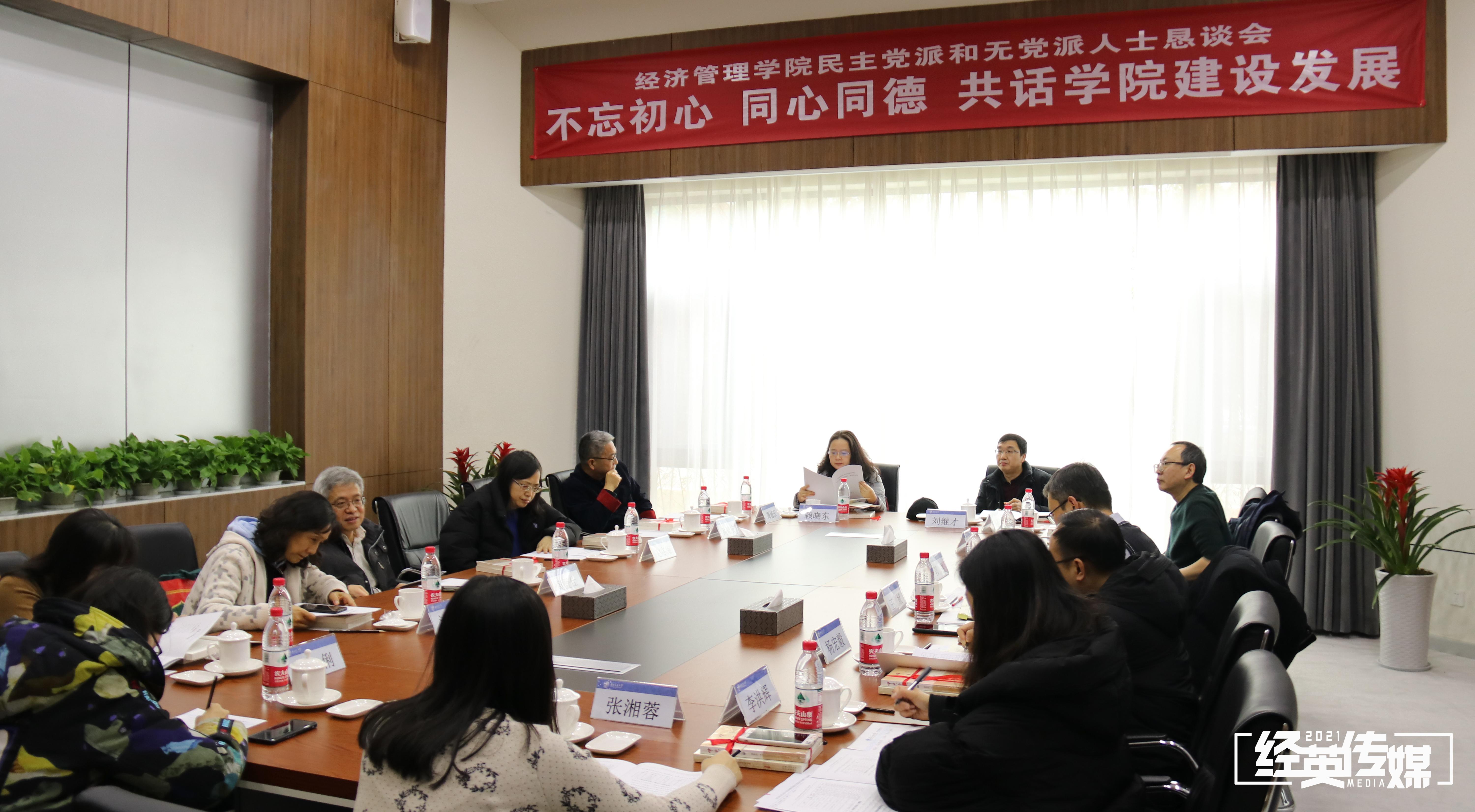 12月16日下午,经济管理公司党委召开民主党派和无党派人士恳谈会,大家紧密围绕学院建设与发展进行座谈交流。公司党委书记王斌、执行经理郭强、党委副书记杨宏毅、副经理周嘉南、副经理李良及学院民主党派和无党派人士参加了恳谈会。