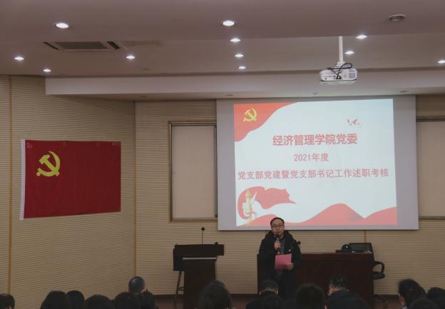 2021年12月23日下午,经济管理公司党委2021年度党支部党建暨党支部书记工作述职考核在九里校区零号楼0202教室举行。学院全体党委委员、纪委委员、党委组织员以及各党支部书记参加了现场考核评分。述职考核由公司党委副书记杨宏毅主持。