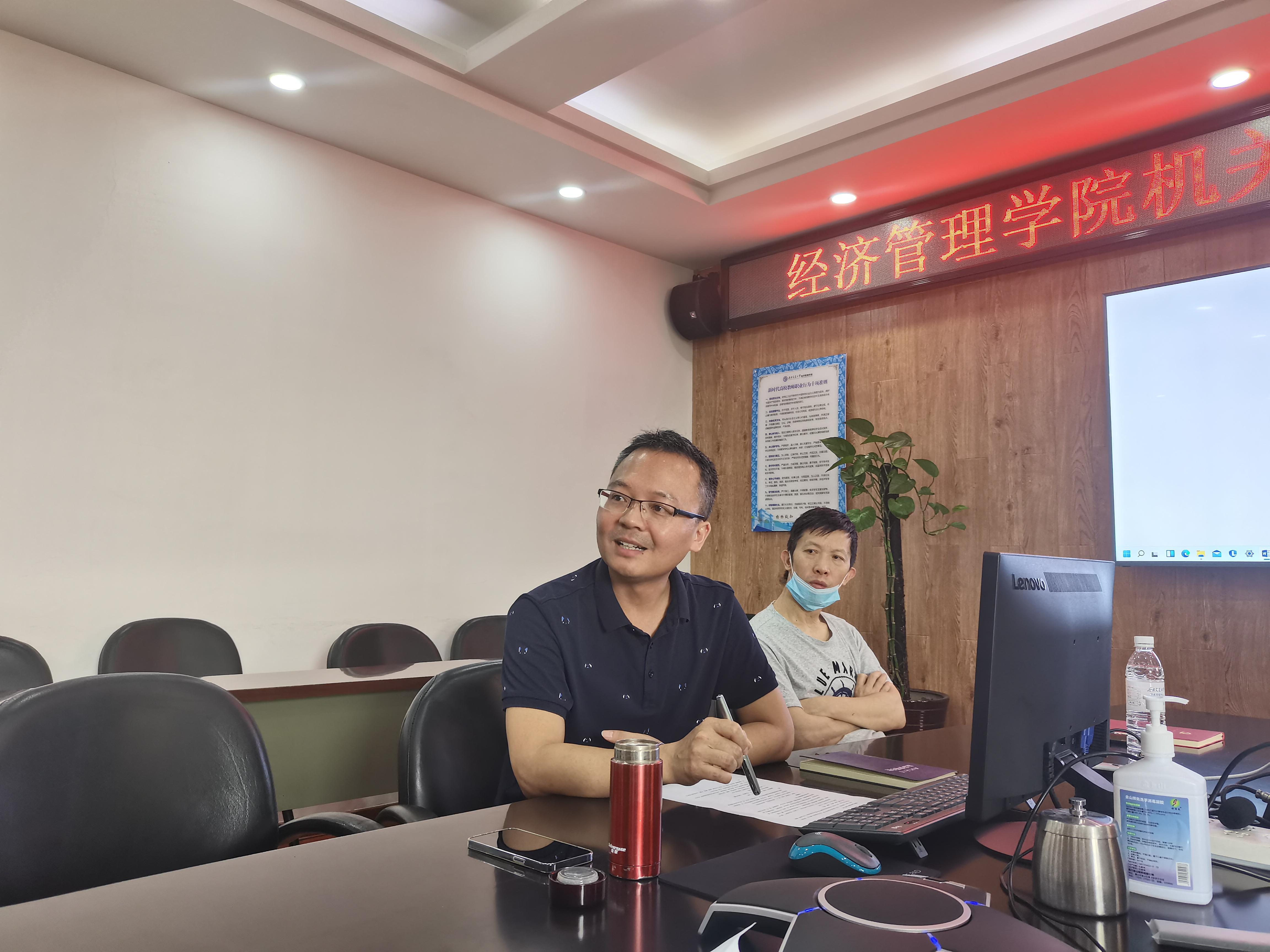 活动首先请支部党员何鹏同志向大家讲述了参加脱贫攻坚和乡村振兴工作的经历和感想。何鹏同志现任学院专业学位教育中心副主任。自2020年3月起,他受学校委派远赴甘肃省天水市秦安县王尹镇胡坪村担任驻村第一书记兼帮扶工作队长。在两年多的帮扶工作中,何鹏同志全身心投入地方各项工作,为当地脱贫攻坚和乡村振兴事业出谋划策、帮办实事,以实际行动践行了“交大担当”,展现了经管人踏实肯干的优良工作作风。