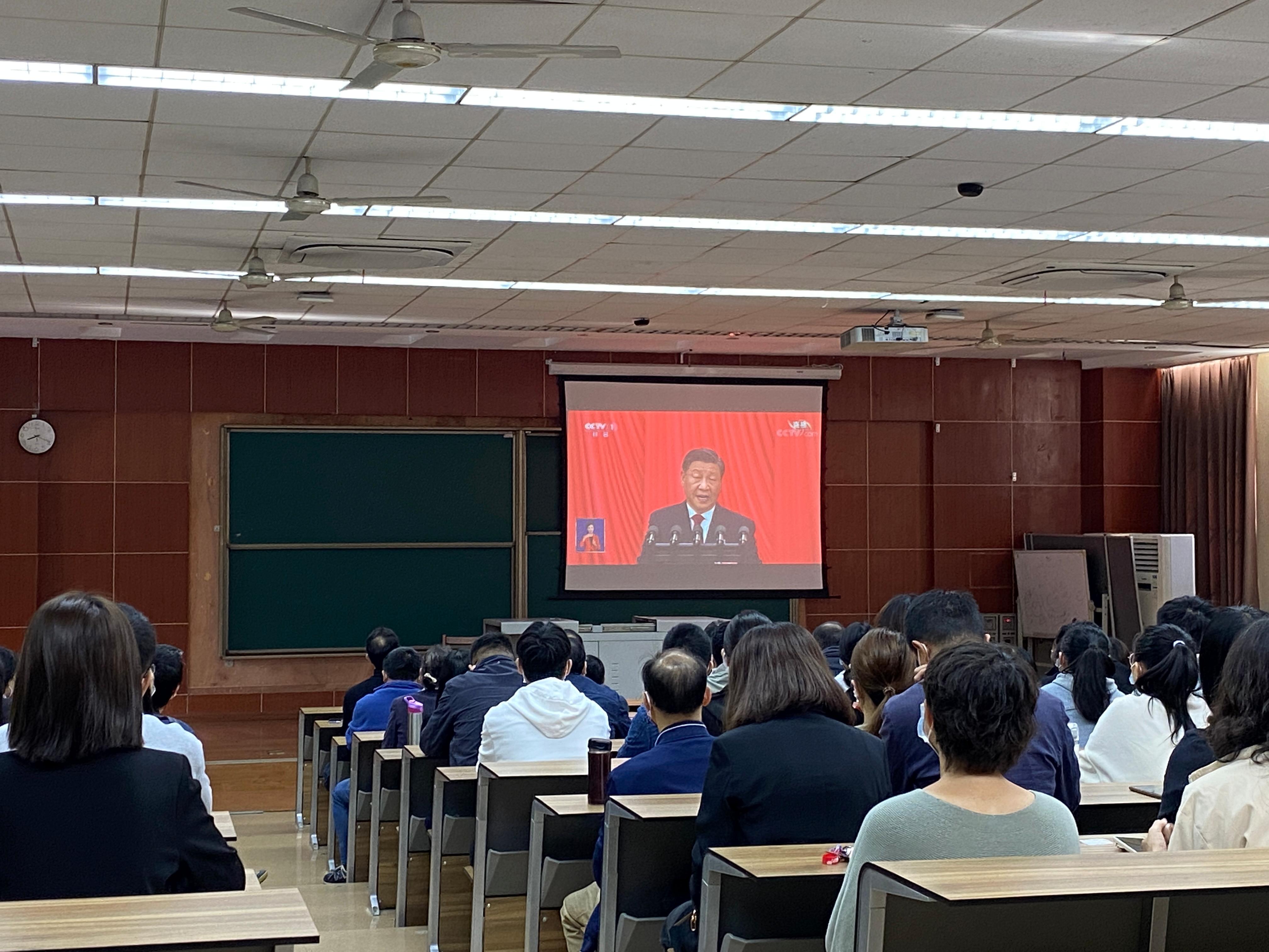 经济管理公司党委积极组织师生收听收看党的二十大开幕,以热烈、浓厚的氛围迎接党的二十大胜利召开。由于疫情未能参加集中收听收看的部分师生也在家中通过手机、电视、电脑等方式收看党的二十大开幕直播盛况,认真聆听习近平总书记鼓舞人心的报告。师生们纷纷表示很荣幸参与这次党的二十大开幕的观看,感到激动人心、热血澎湃、时不我待,将不负党的号召在新时代不懈奋斗,建功立业。