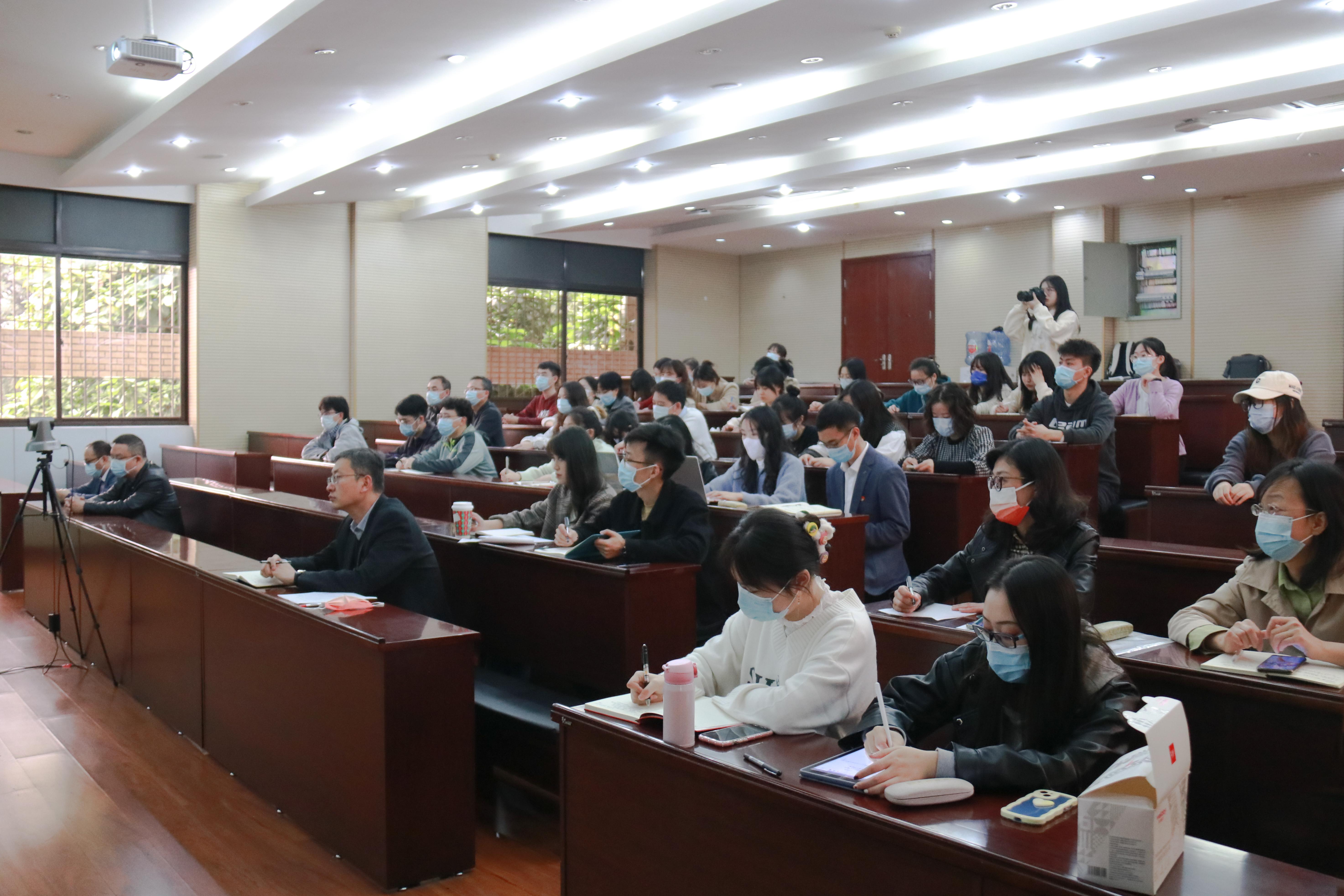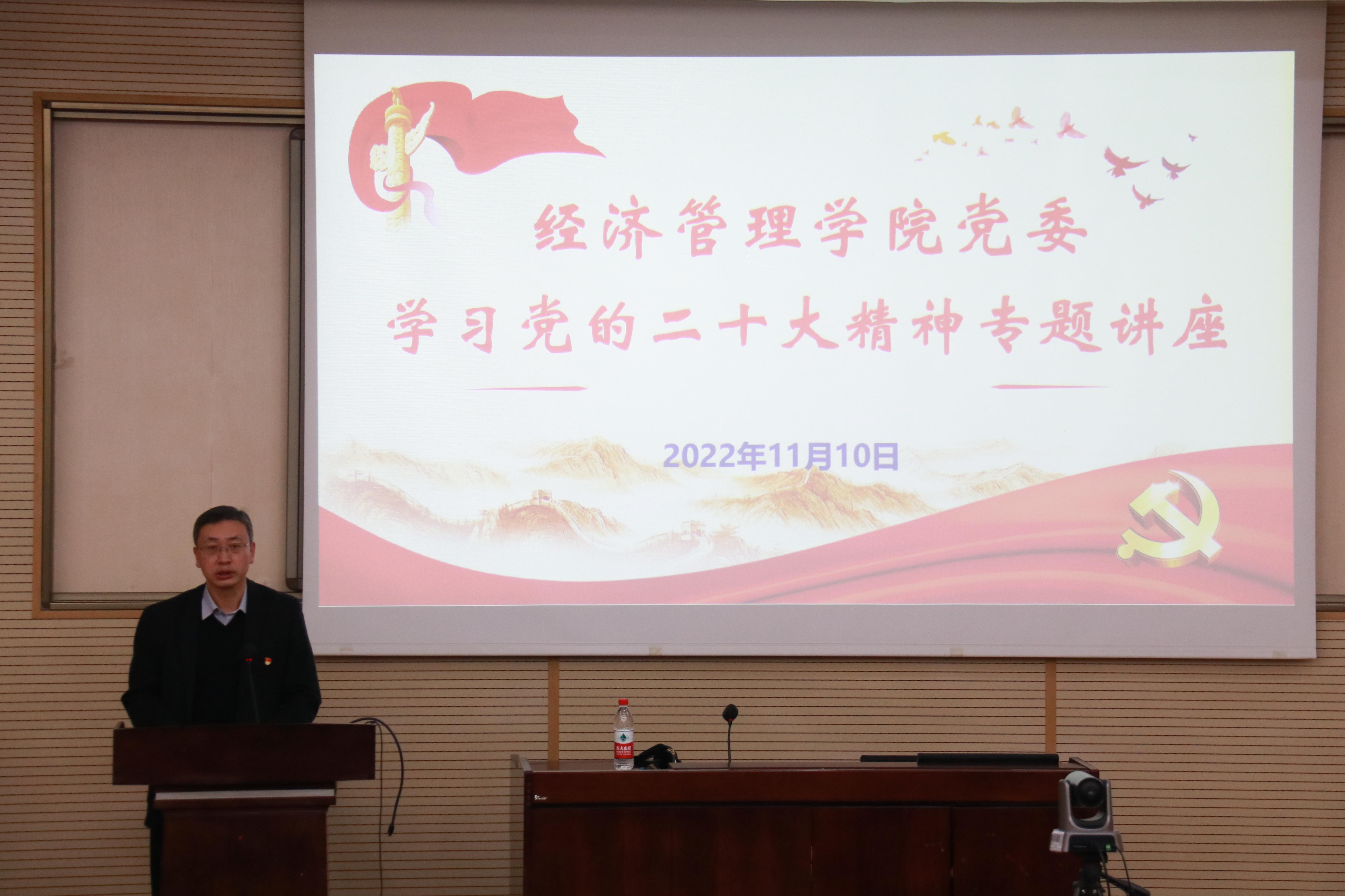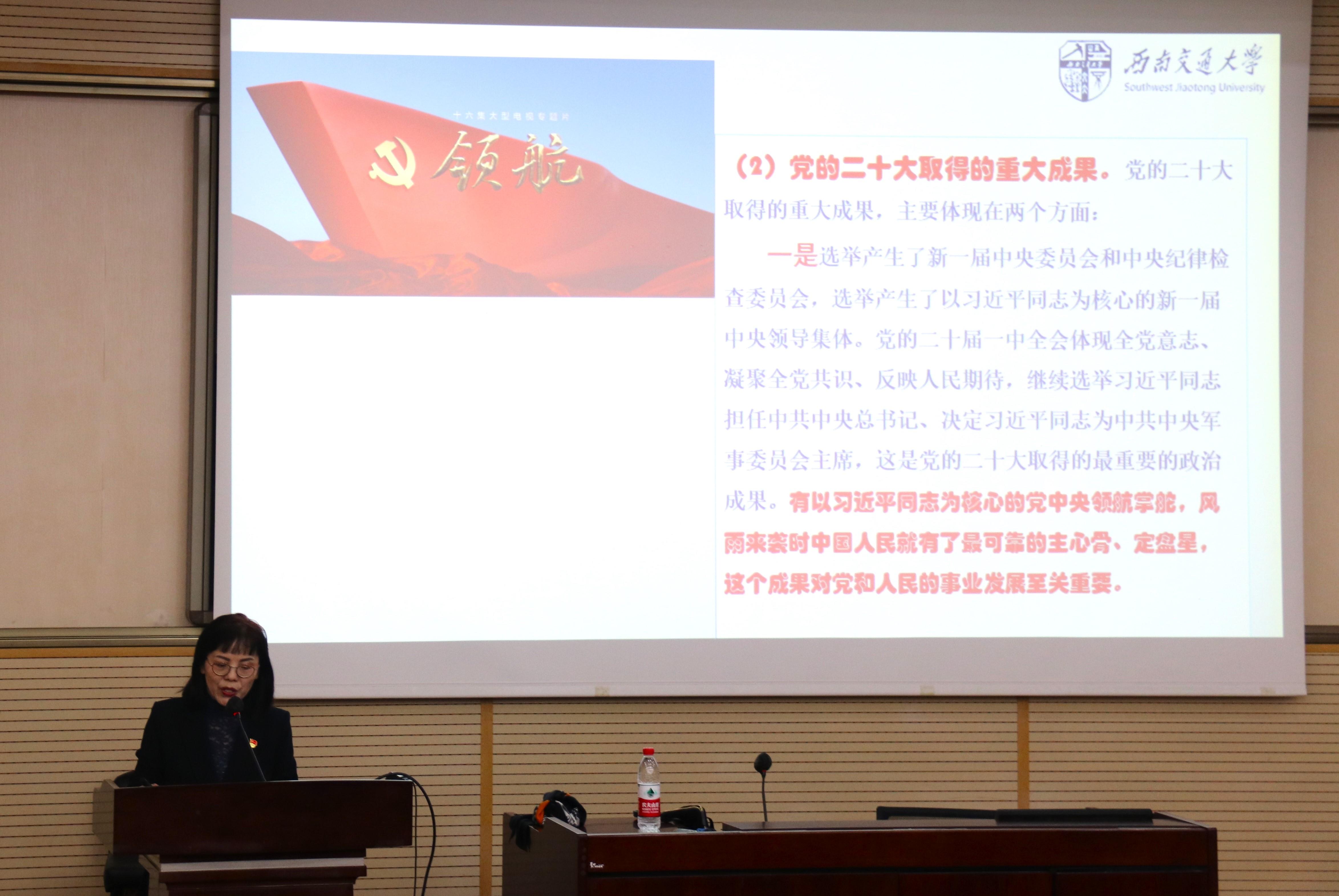 为深入学习贯彻党的二十大精神,经济管理公司党委特邀四川省委宣讲团专家库成员、哈哈体育马克思主义学院教授何薇老师于11月10日下午在九里校区0202教室作题为《学报告悟思想开新局——深入学习领会党的二十大精神 坚定不移推进全面从严治党》的专题报告。讲座由公司党委书记王斌主持,公司党委委员、院领导、各师生党支部委员参加了此次专题讲座。