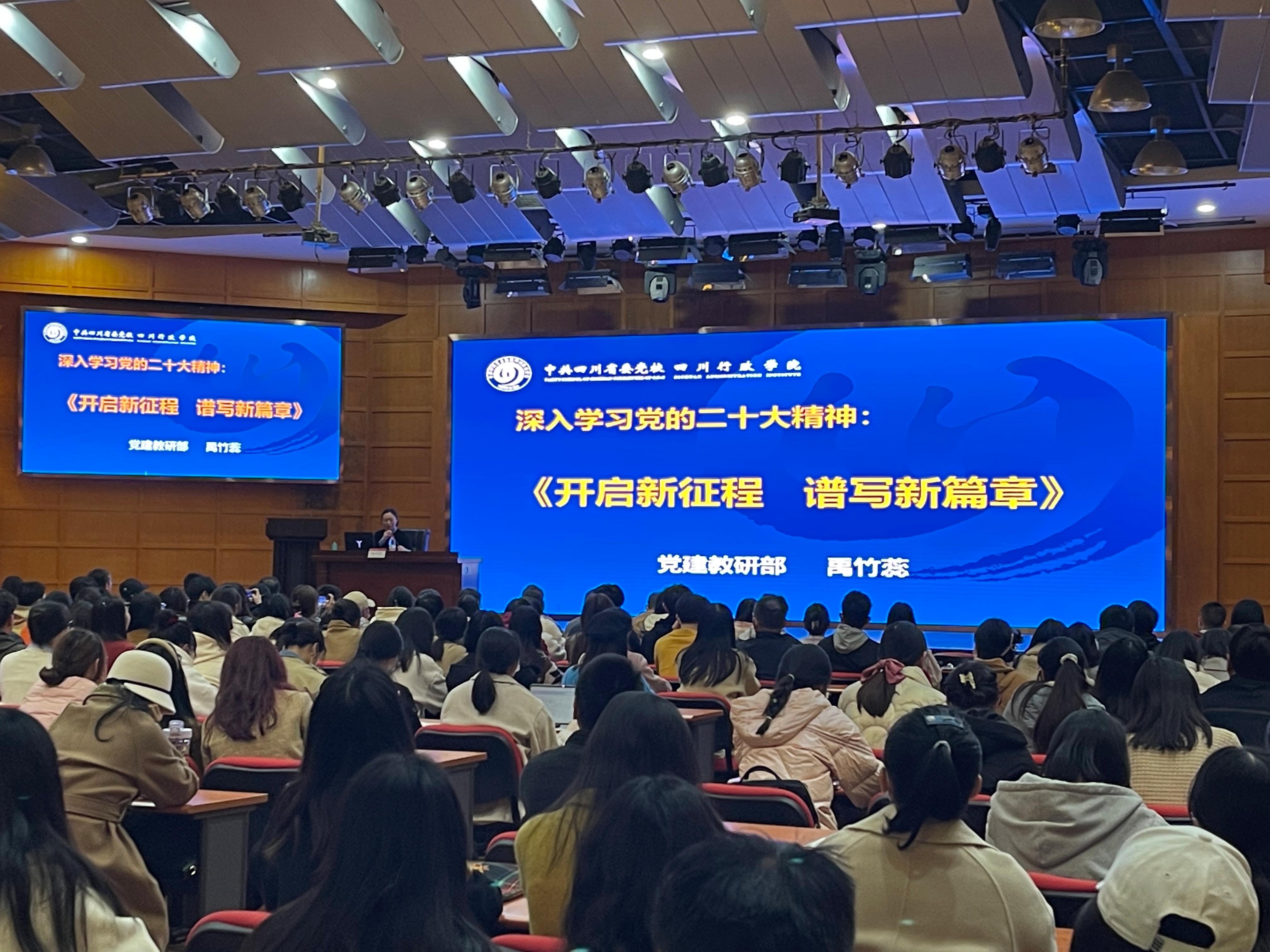 为深入学习贯彻党的二十大精神,引导全院师生党员深刻理解党的二十大作出的新部署新要求,上好“开学第一课”,公司党委于3月2日下午,邀请四川省委党公司党建教研部教授、四川省党内法规建设智库首席专家禹竹蕊教授作了题为“深入学习党的二十大精神:开启新征程,谱写新篇章”的专题辅导报告,学院全体师生党员参加。报告会由公司党委书记王斌主持。