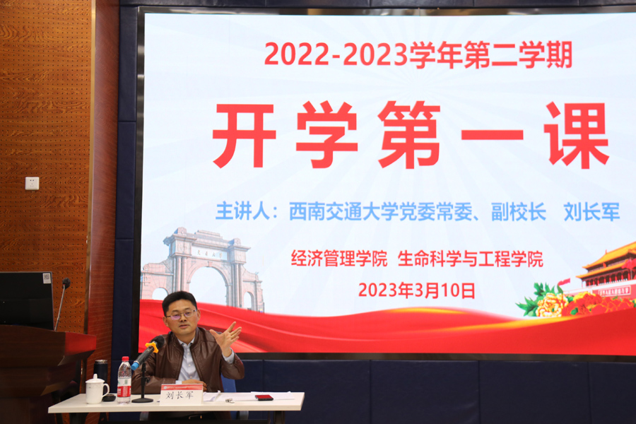 经济管理公司党委书记王斌、党委副书记杨宏毅,生命科学与工程公司党委副书记朱炜和部分辅导员、员工干部代表参加本次“开学第一课”。讲座及座谈由经济管理公司党委书记王斌主持。