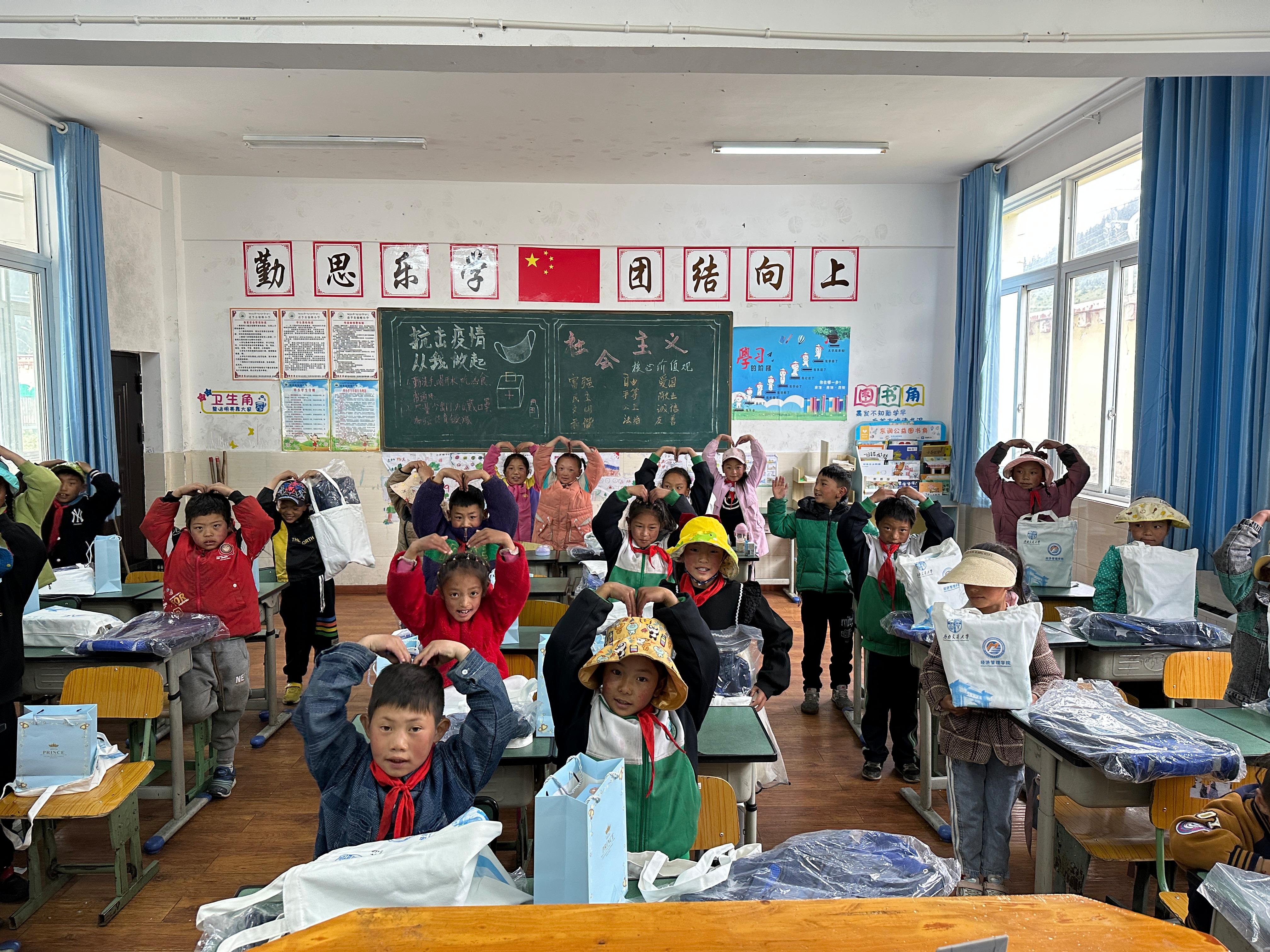 “经前期调研得知,该校地理位置偏远、海拔整体偏高、冬季气候严寒,缺乏御寒衣物,孩子们渴望拥有温暖的校服和崭新的书包,所以我们支部决定开展这次活动,意在传递爱心、彰显情怀、营造希望。”作为拥有15年党龄的中共党员、2022级MBA周末二班在读研究生的王莱,在了解到该校的实际困难后,萌生了发起一次爱心助学活动的想法,并将想法讲与党支部书记王珊珊。