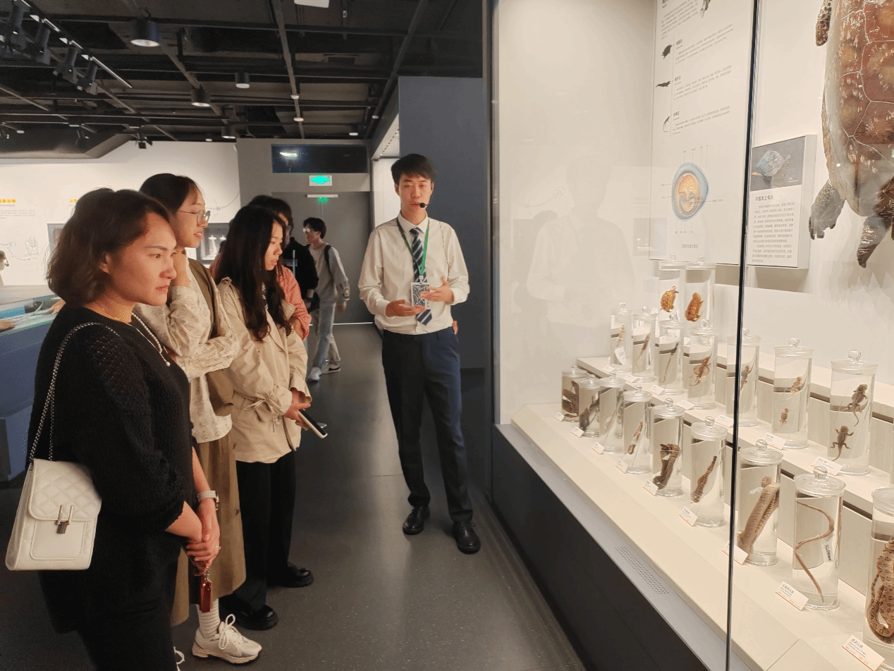 接着,来到三楼自然专题展厅,其中包含“生命之树”、“自然与人”和“探寻生命本质”三个板块。“生命之树”板块通过极长的时间跨度,远至远古时期的草履虫,近至新型冠状病毒,向参观者直观展示了物种的进化过程。在“自然与人”板块,一件全部由垃圾制作而成的“自然之殇”作品吸引了很多同学驻足观看,思考人与自然的关系。在“探寻生命本质”板块,可以看到近100万份的动植物标本,这是科研工作者们近百年的积累。