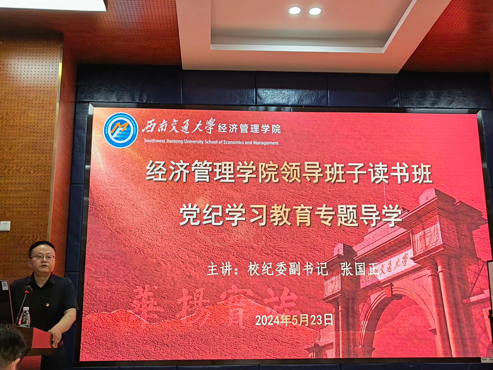 为扎实推进党纪学习教育,根据《经济管理公司党纪学习教育党委理论学习中心组、领导班子读书班集中学习方案》的安排,5月23日,公司党委在九里校区0218教室开展党纪学习教育领导班子读书班(扩大)集体学习,学院领导班子、纪委委员、党支部书记、学院科职干部、内设机构干部等人员参加学习。