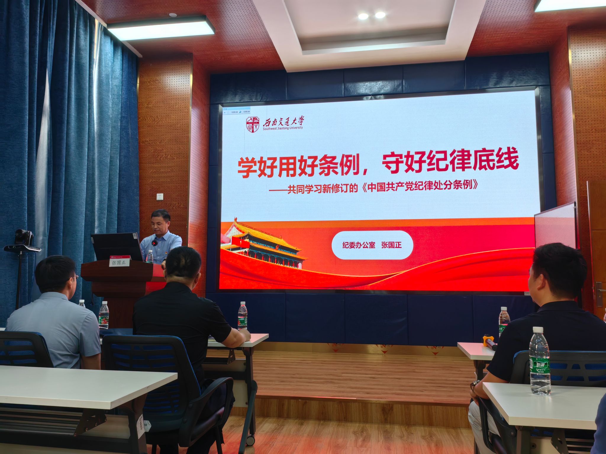 公司党委发挥“头雁效应”,以上率下,示范引领。5月13日,党委理论学习中心组深入学习《中国共产党纪律处分条例》,公司党委书记郭强领学,党委委员原原本本跟学。5月23日,学校纪委张国正副书记为学院作专题导学,结合案例详细解读与师生紧密相关的纪律条款。6月21日,公司党委书记郭强和公司党委副书记、纪委书记晏理斌面向2024届毕业生开展党纪廉洁教育,强调诚信廉洁的重要性。6月26日,公司党委书记郭强讲授专题党课,结合案例阐释新旧《条例》变化,强调师生应遵守党纪,为党的事业和社会发展贡献力量。