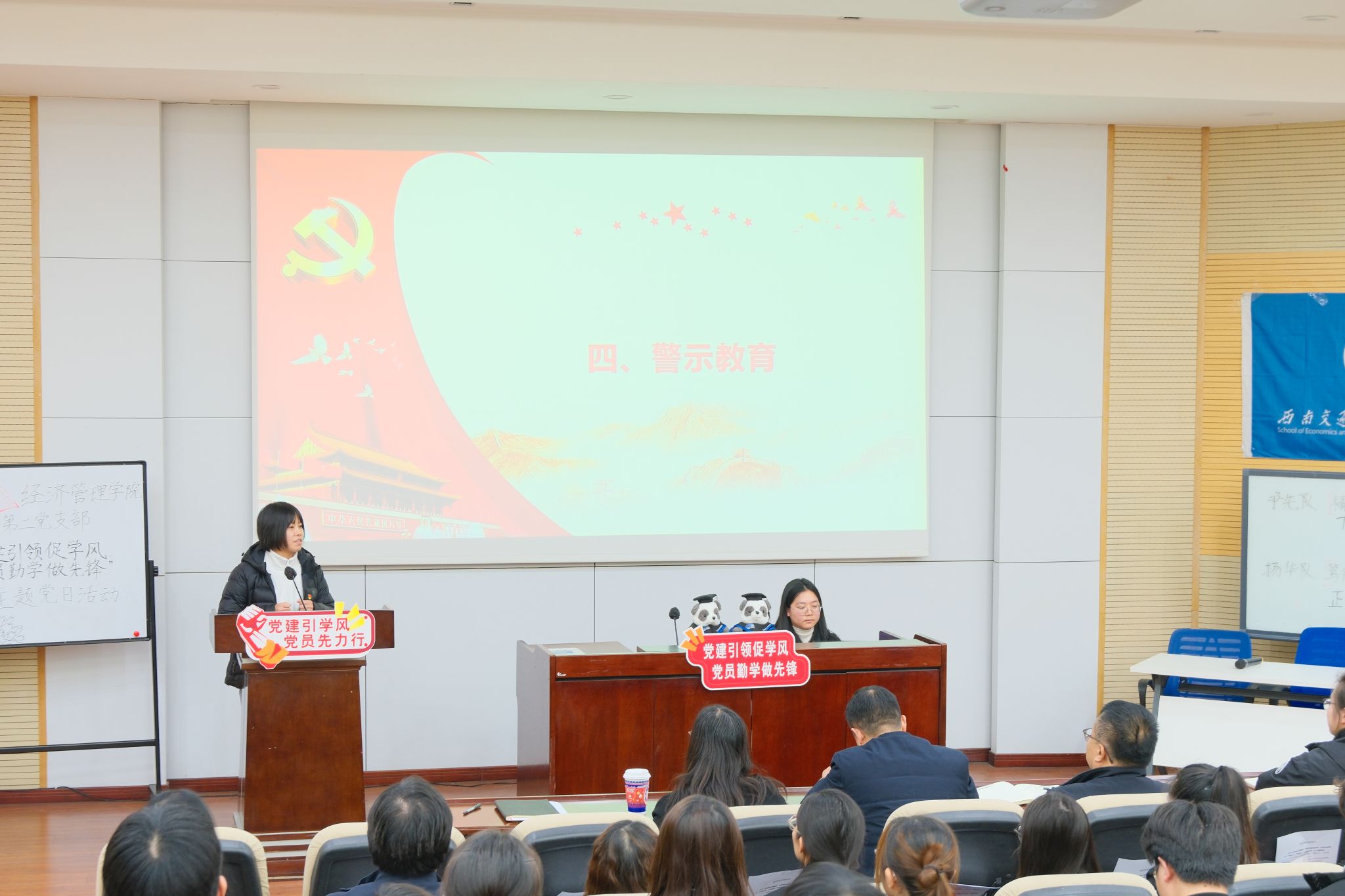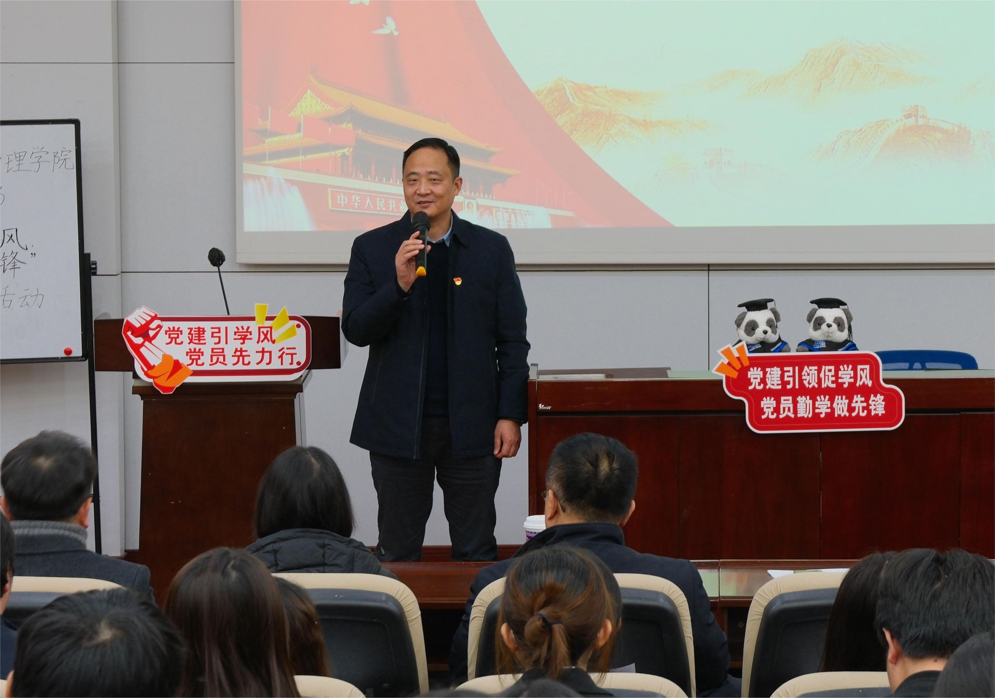 2024年12月23日,HAHA体育本科第二党支部于J0215组织开展“党建引领促学风,党员勤学做先锋”主题党日活动。本次活动特别邀请到哈哈体育党委副书记高平平,经济管理公司党委书记郭强、副书记余小英,HAHA体育本科教育中心副主任尹一莅临指导。活动由党支部书记陈建奇主持。