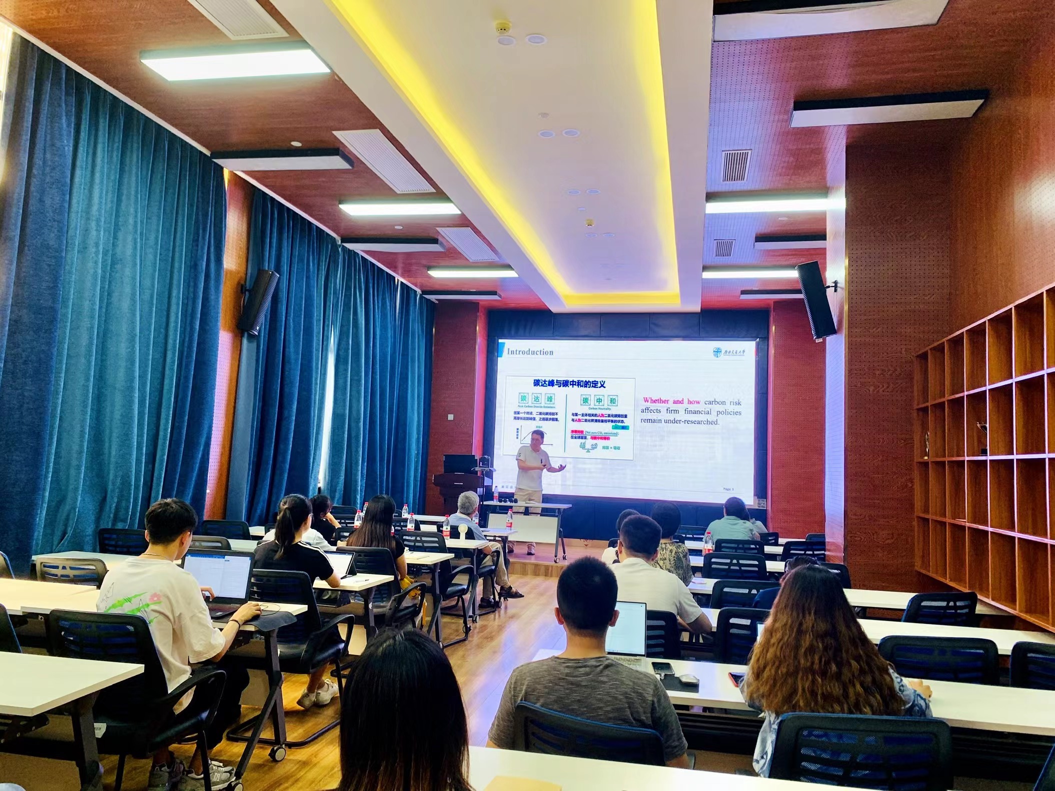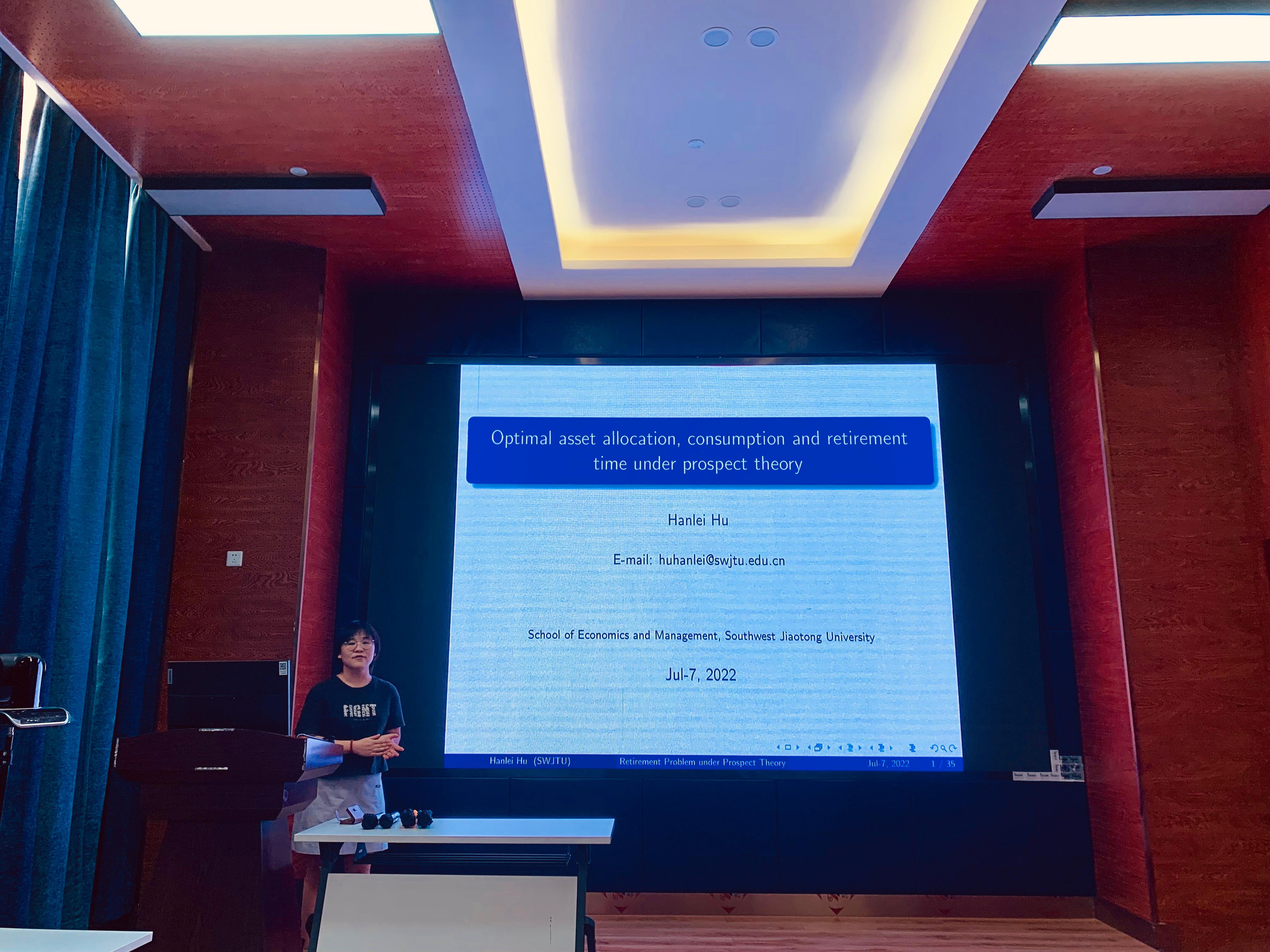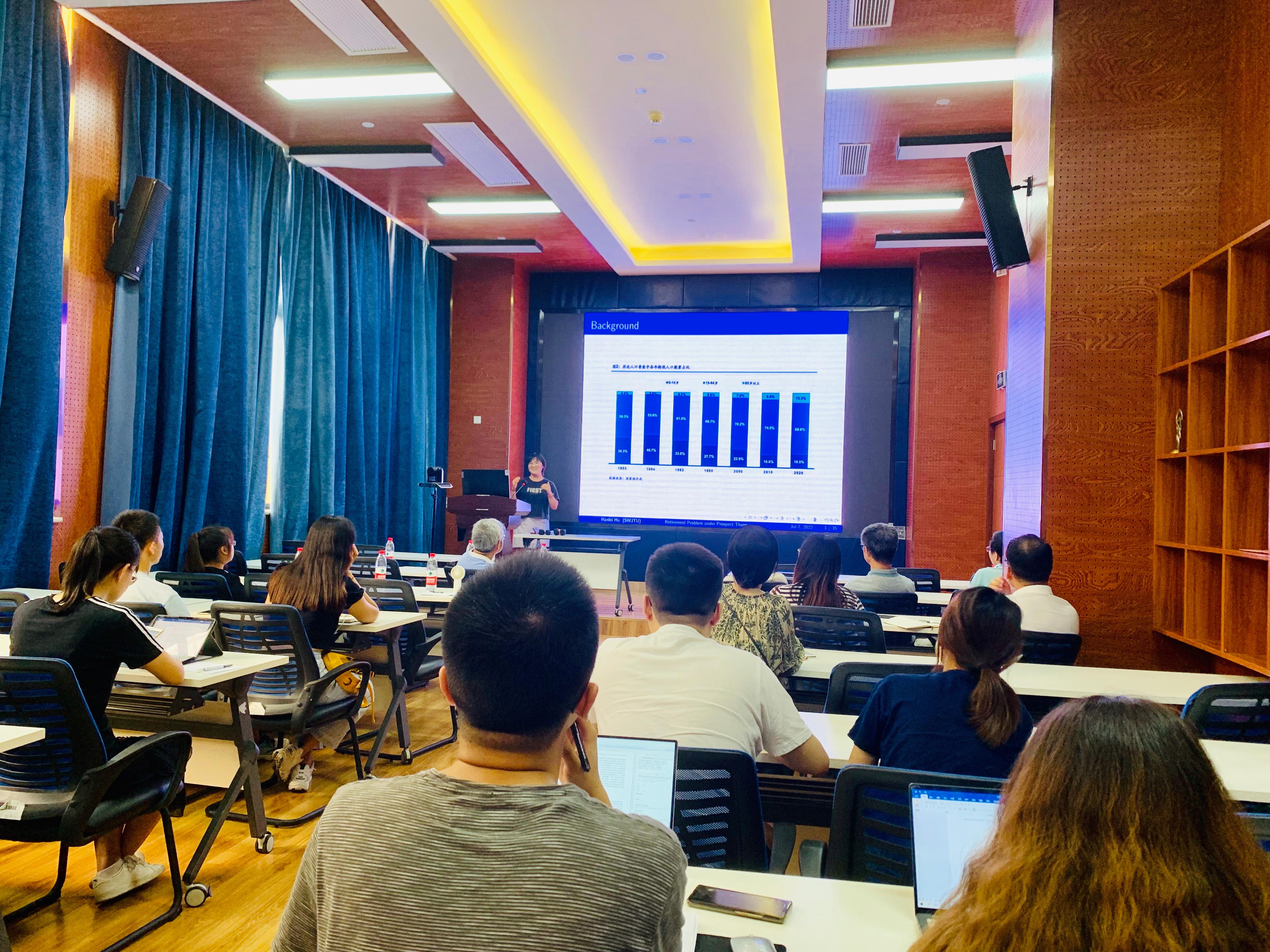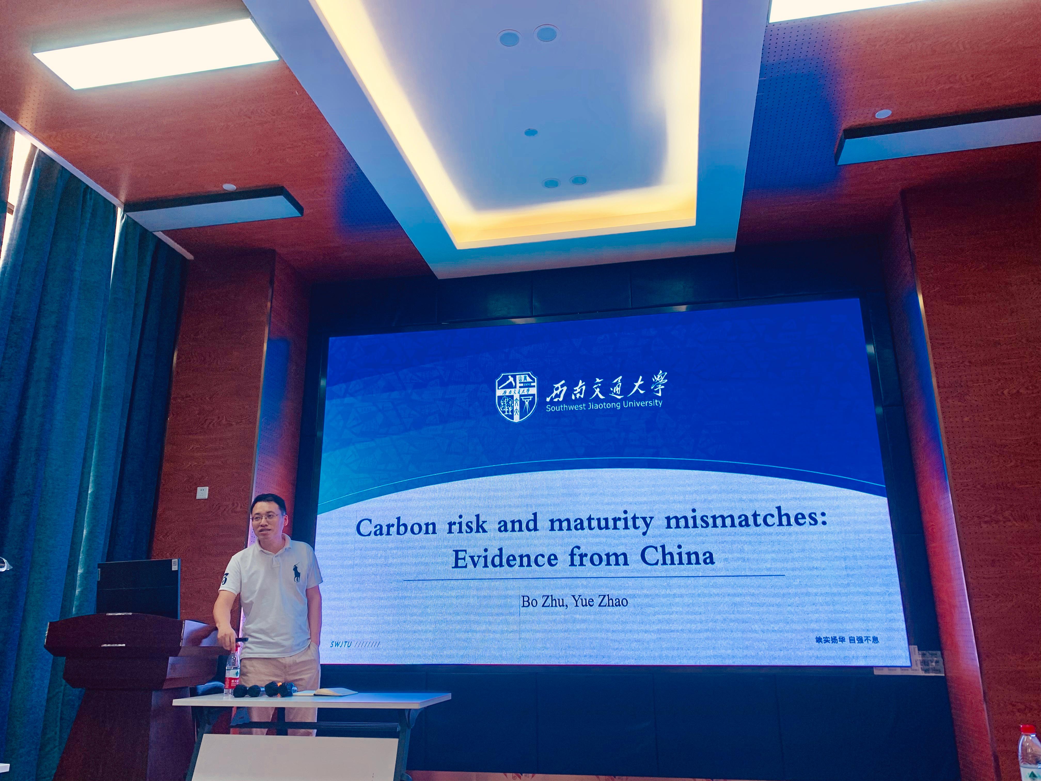 2022年7月7日下午3点,HAHA体育会计学系诸波老师和金融与财务学系户晗蕾老师在九里校区0218室分别开展了题为“Carbon risk and maturity mismatches: Evidence from China”、“Optimal asset allocation, consumption and retirement time under prospect theory”的学术研讨会。会议由金融与财务学系副系主任郭姝辛老师主持,HAHA体育部分教师及研究生参加了本次学术交流活动。