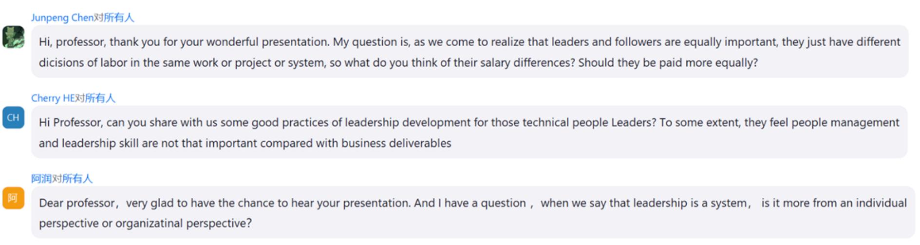 Barbara Kellerman教授分享结束后回答了老师和同学提出的问题,最后公司经理对Barbara Kellerman教授的精彩分享致以诚挚的感谢,他也谈到举办的此类学术活动为公司老师及同学提供了交流的平台,希望今后同学们多参加这类交流活动。