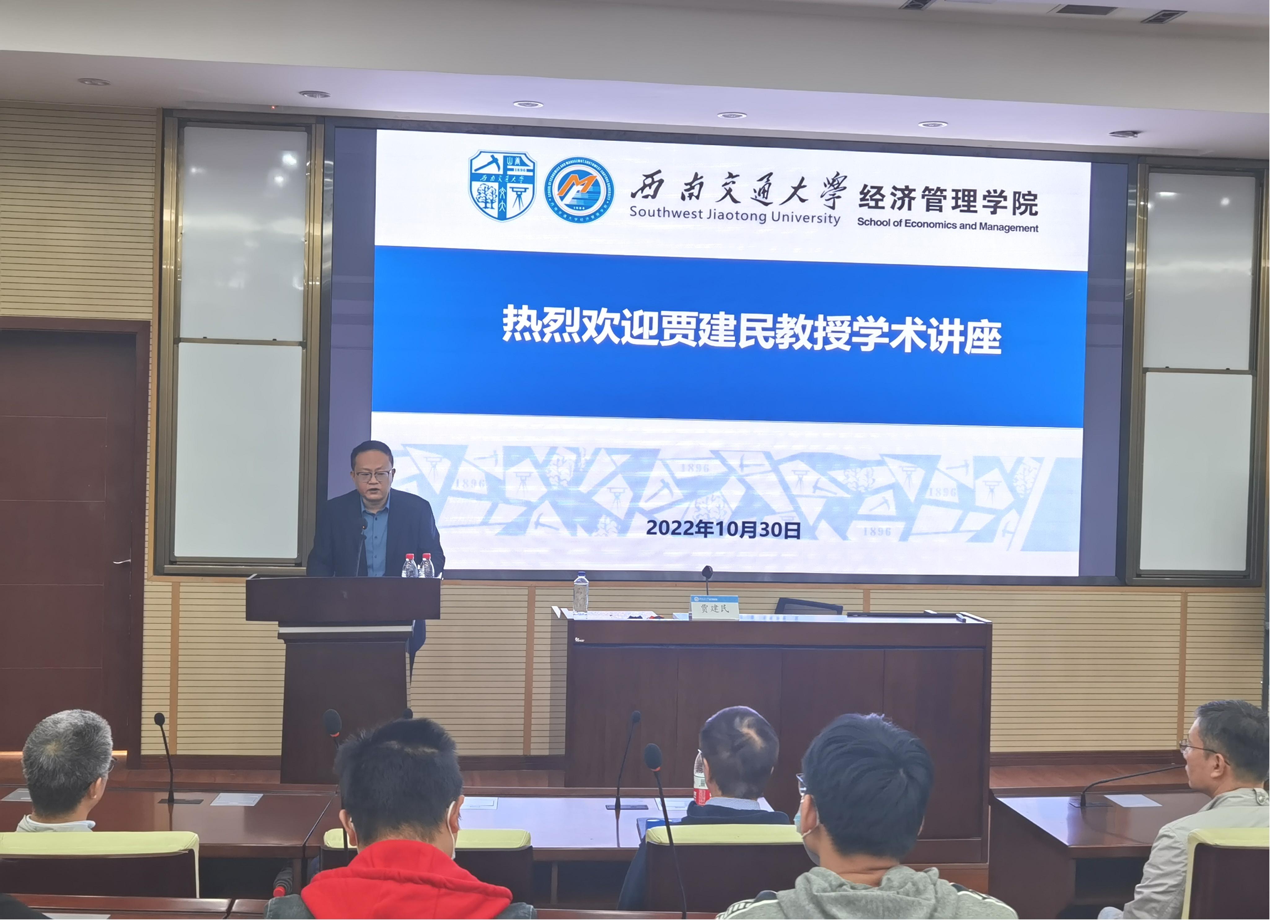 执行经理郭强对贾建民教授致以诚挚的感谢和欢迎,并向师生介绍了贾建民教授的学术专长和研究成果。贾建民教授长期致力于大数据战略、社会网络、市场风险分析以及决策理论与应用方向的研究,获得了国家自然科学基金和香港特区政府研究资助委员会的资助,迄今已在《Nature》《Nature Communications》《Management Science》《Marketing Science》《Journal of Consumer Research》《Operations Research》《Psychological Science》等国际权威学术期刊以及中文学术期刊上发表大量论文,并在多个重要国际会议上担任大会主席或分会主席,获得了国际学术界的广泛认可。