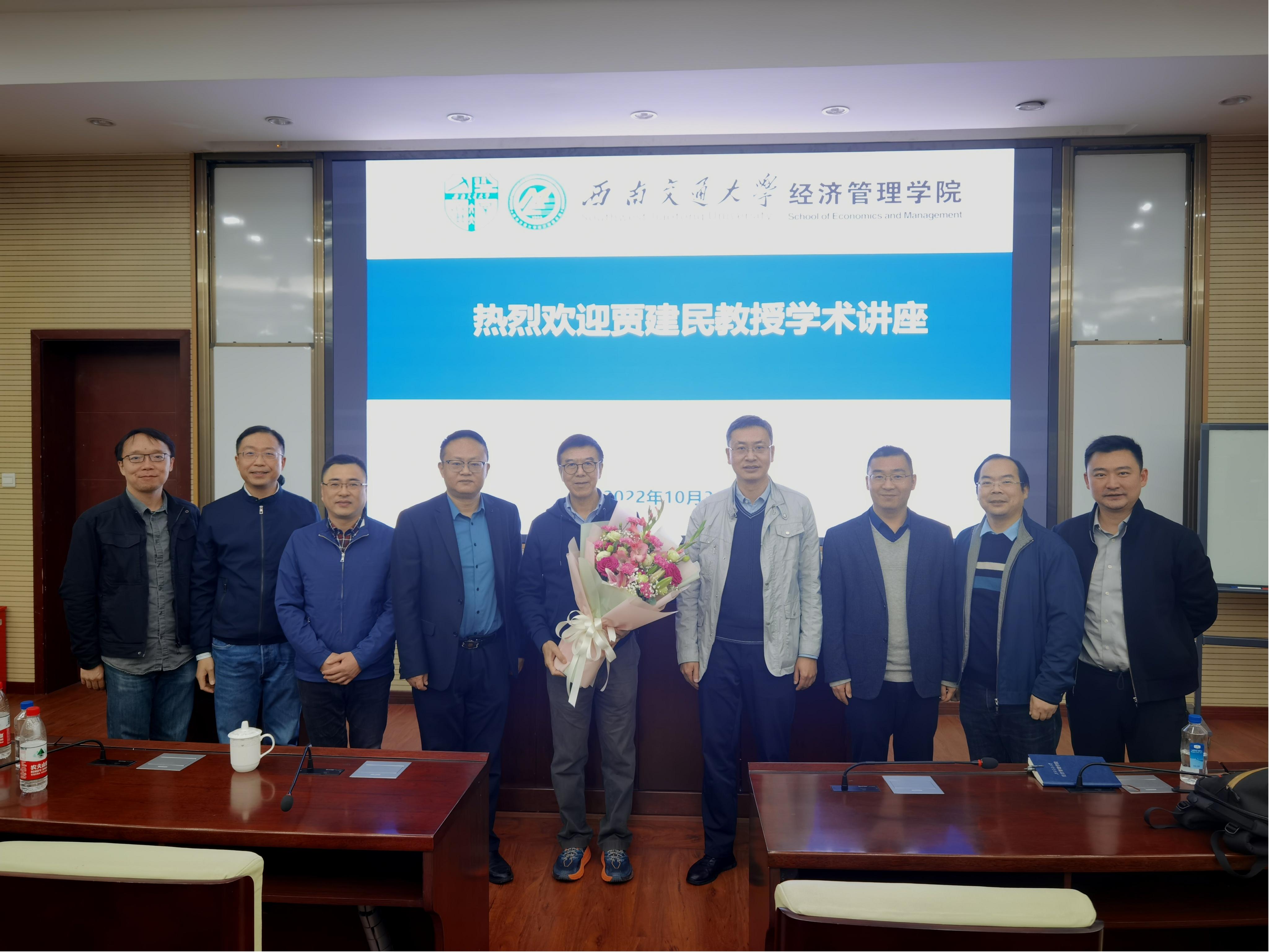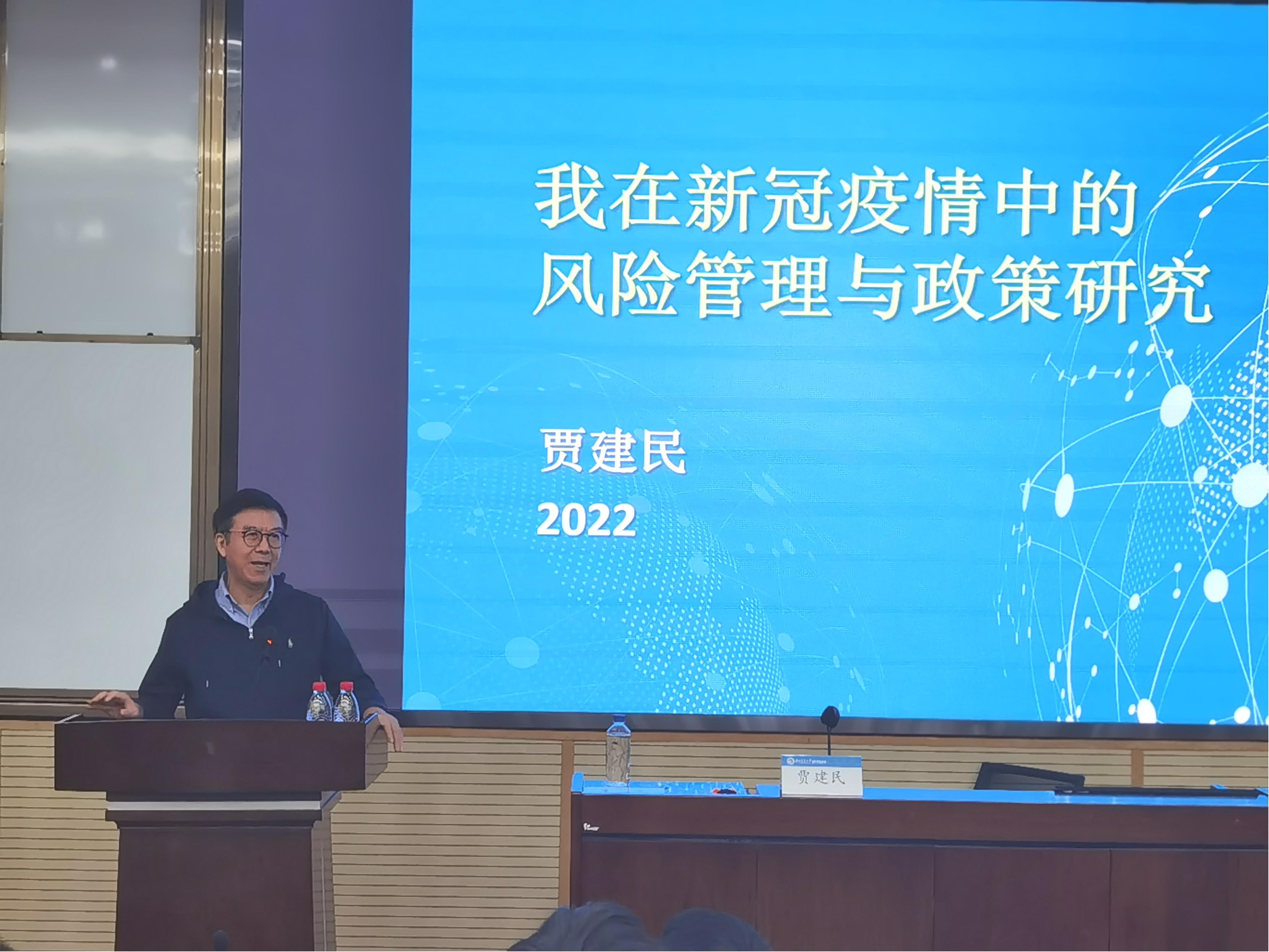 2022年10月30日下午,公司名誉经理贾建民教授以“我在疫情中的风险管理与政策研究”为题为学院师生带来了一场精彩的学术分享。本次学术活动由公司执行经理郭强教授主持,公司党委书记王斌、副经理聂佳佳等师生参加了讲座。