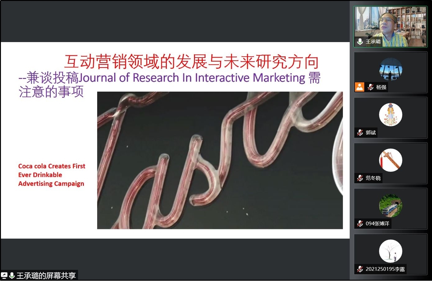2022年4月21日上午9:00,美国纽黑文大学商学院营销学终身教授王承璐博士应邀以“互动营销领域的发展与未来研究方向”为题为公司师生进行线上学术报告。本次学术活动由学院市场学系蒋玉石教授主持,学院部分教师及80余名研究生参加了本次讲座。