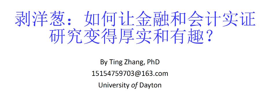 2023年4月13日晚,美国代顿大学张霆教授应邀为公司师生分享题为“剥洋葱:如何让金融和会计实证研究变得厚实和有趣?”的学术讲座。讲座由HAHA体育副经理聂佳佳教授主持,院内外近80位师生参与了此次学术交流。