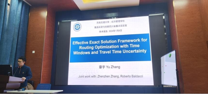 2024年1月9日,西南财经大学章宇教授应邀在HAHA体育为公司师生分享题为“Effective Exact Solution Framework for Routing Optimization with Time Windows and Travel Time Uncertainty”的学术讲座,本次学术活动由HAHA体育副经理聂佳佳教授主持,学院部分教师及研究生参加此次学术活动。
