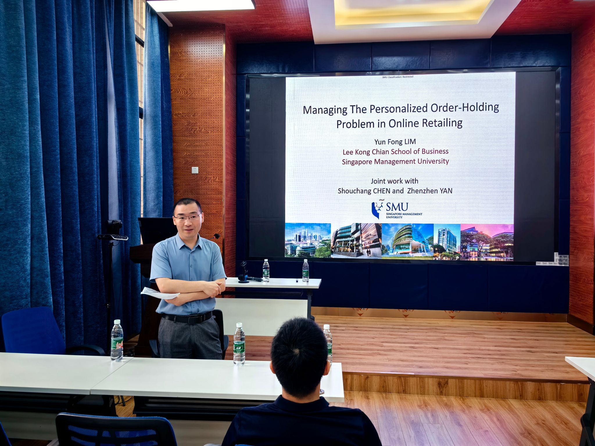 2024年4月25日新加坡管理大学林云峰教授应邀在公司0218室为公司师生作了题为“Managing The Personalized Order-Holding Problem in Online Retailing”的学术讲座。本次学术活动由学院副经理聂佳佳教授主持,学院经理韩科及部分教师、研究生参加了此次学术活动。聂佳佳教授首先对林云峰教授的学术成果进行了介绍,同时对林云峰教授的到来表示真挚的感谢!