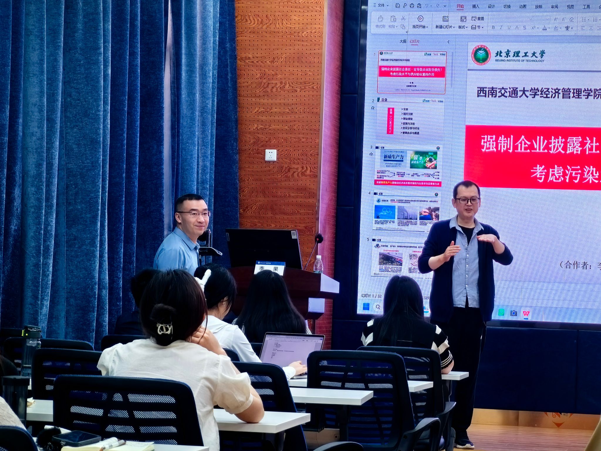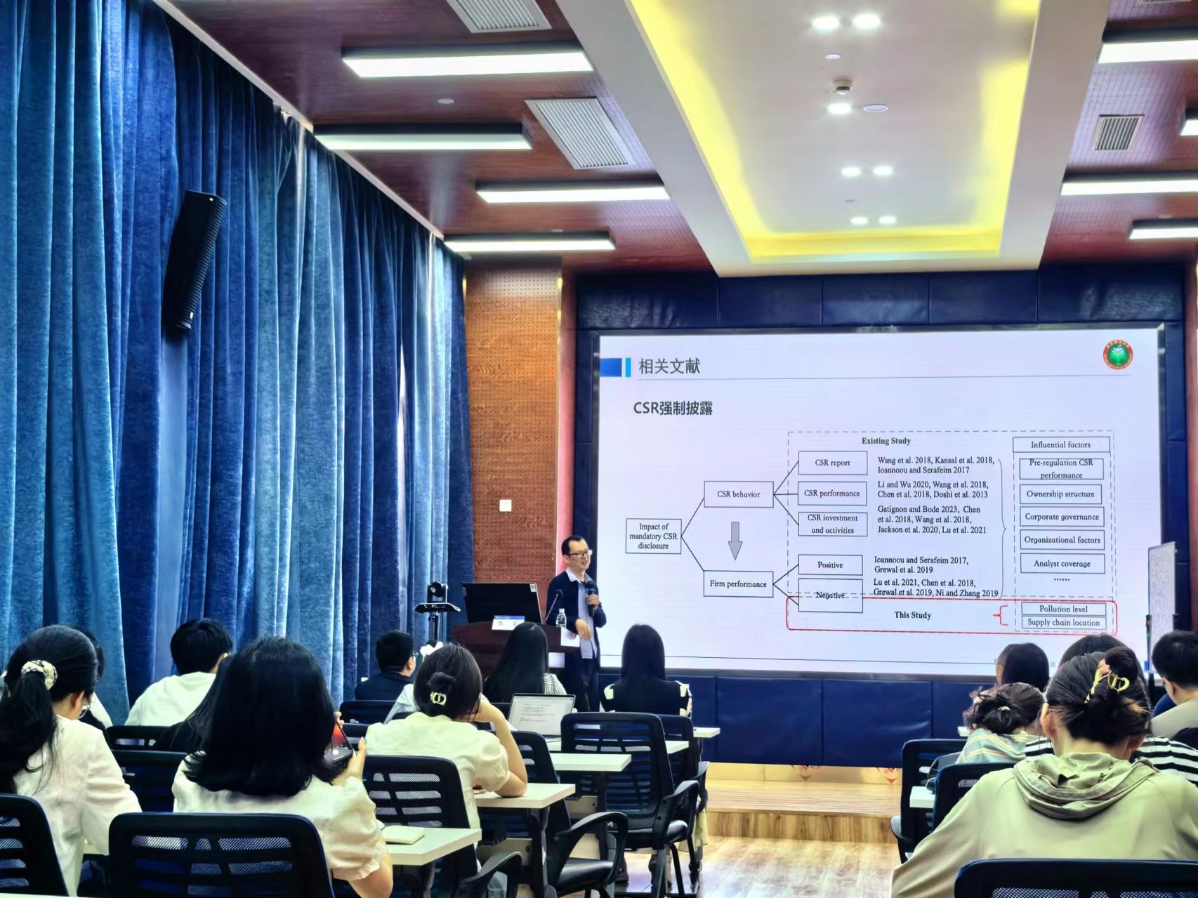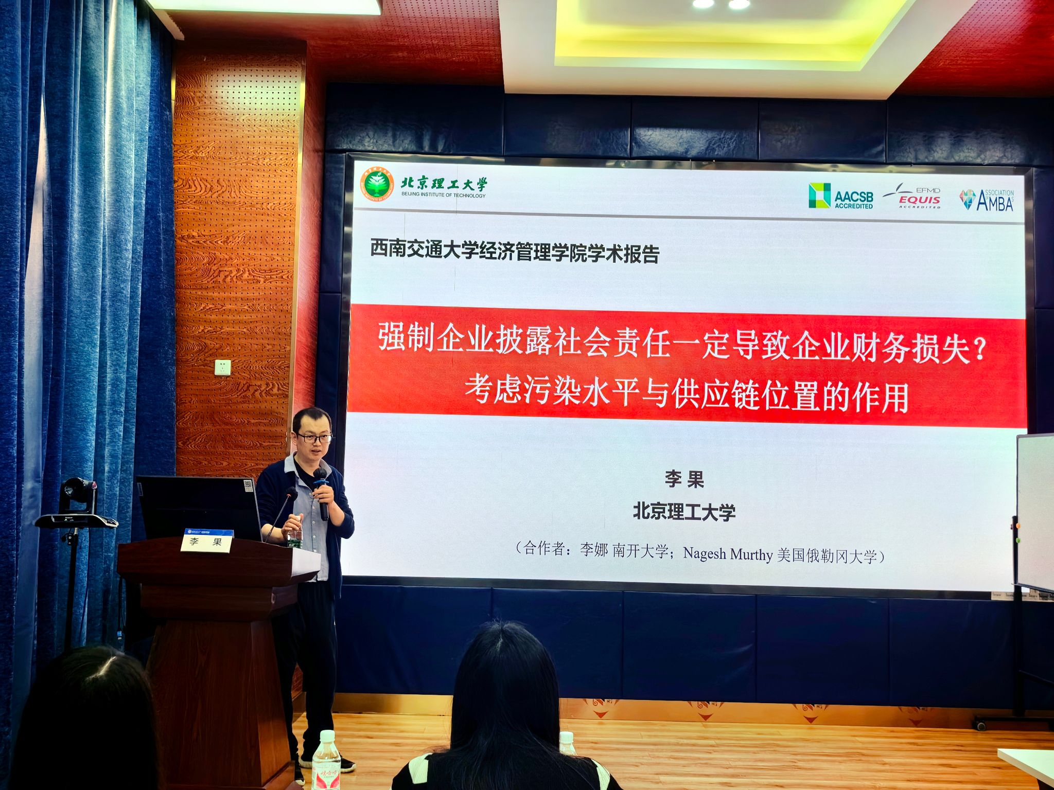 2024年5月24日,北京理工大学管理与经济学院管理科学与物流系主任,国家高层次人才计划入选者李果教授应公司邀请,来公司展开学术交流活动,交流主题为“强制企业披露社会责任一定导致企业财务损失?考虑污染水平与供应链位置的作用”。本次学术活动由学院副经理聂佳佳教授主持,学院部分教师、博士生和硕士生等50多人参加了此次学术活动。聂佳佳教授首先对李果教授的学术成果进行了介绍,同时对李果教授的来访表示热烈的欢迎!