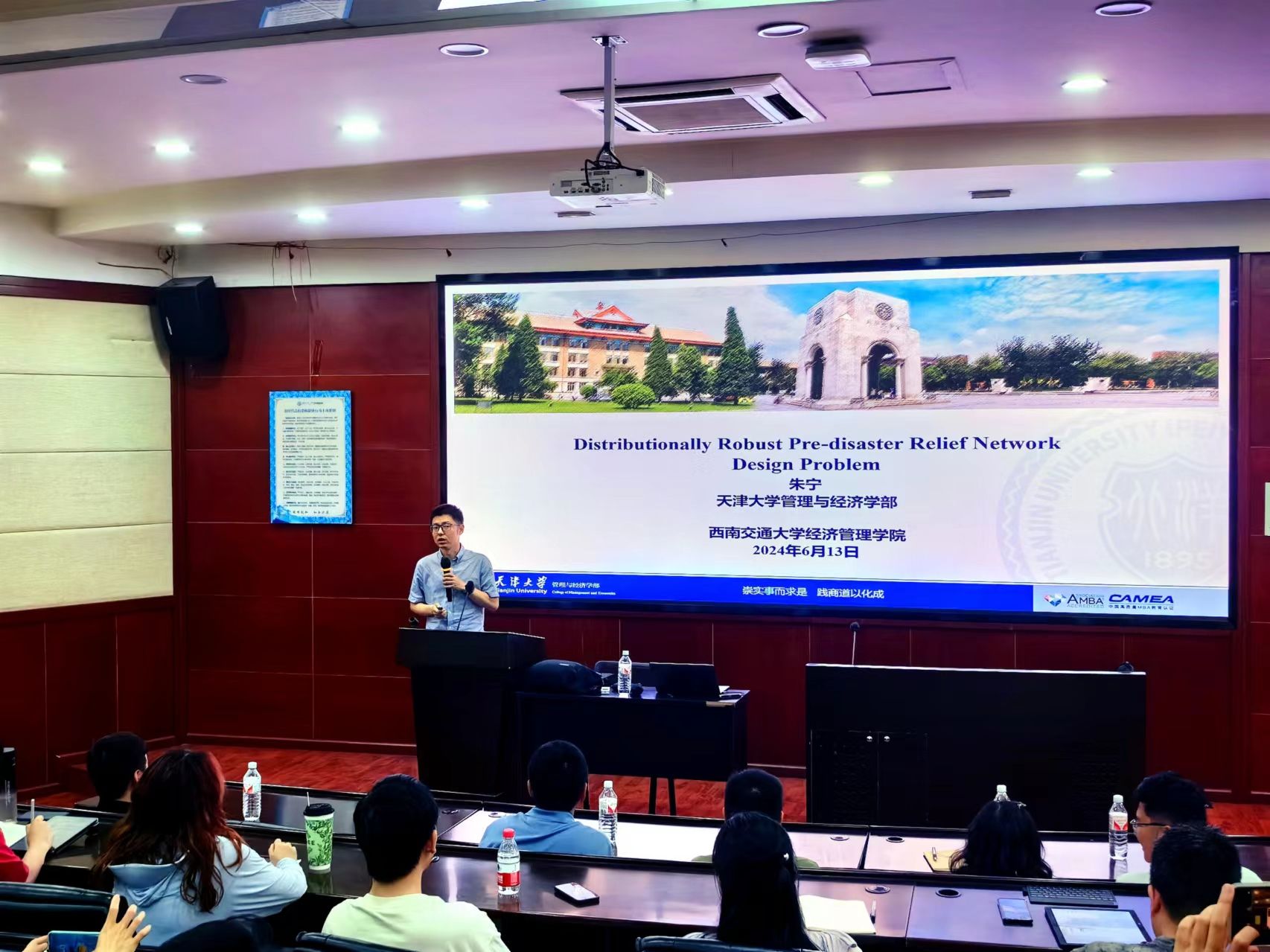 2024年6月14日,天津大学管理与经济学院朱宁教授应邀在学院为师生作题为“应急管理中的鲁棒优化方法”的学术讲座。经理韩科教授主持了此次学术活动,学院部分教师及研究生参加了讲座。韩科教授介绍了朱宁教授的学术背景及成果,并对他的到来表示热烈欢迎与感谢。