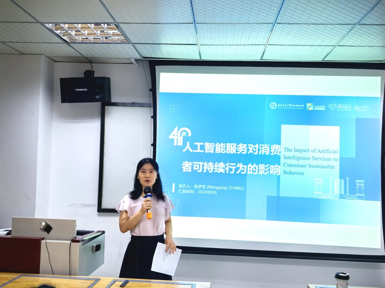 2024年9月27日上午10点,哈哈体育九里校区零号楼0302室举办了新青年教师系列讲座。本次讲座邀请了HAHA体育市场学系的助理教授张梦莹博士,围绕“人工智能服务对消费者可持续行为的影响”这一主题展开,学院部分师生到场聆听,讲座由市场学系副系主任范春梅副教授主持。