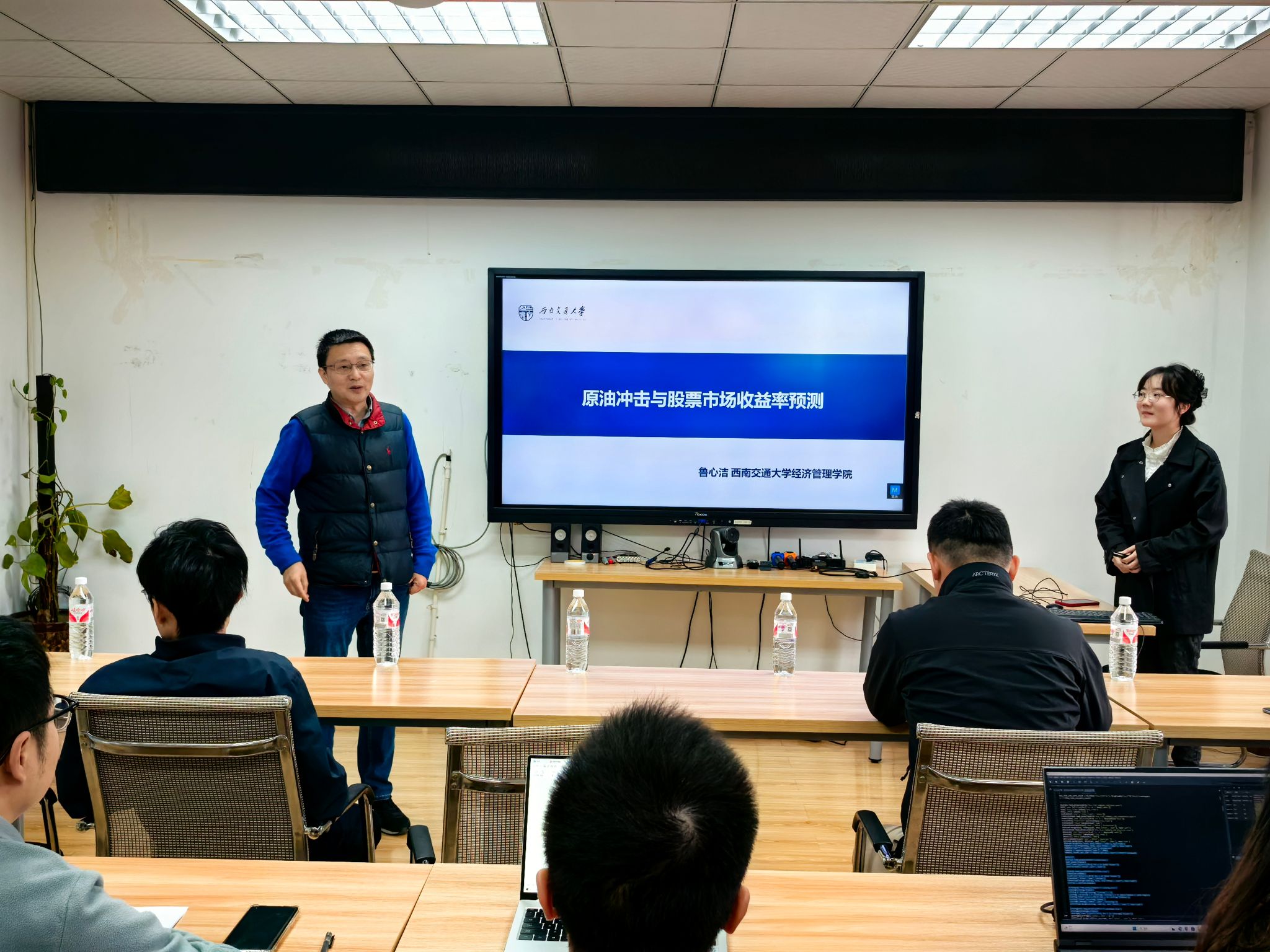 学术分享交流的最后,鲁博士对原油冲击对股票市场收益率的影响机制进行了探讨,包括采用文本分析方法衡量原油冲击的优势、现金流与折现率渠道、投资者情绪渠道等,在场师生热情参与了讨论,并踊跃地表达了自己的观点。