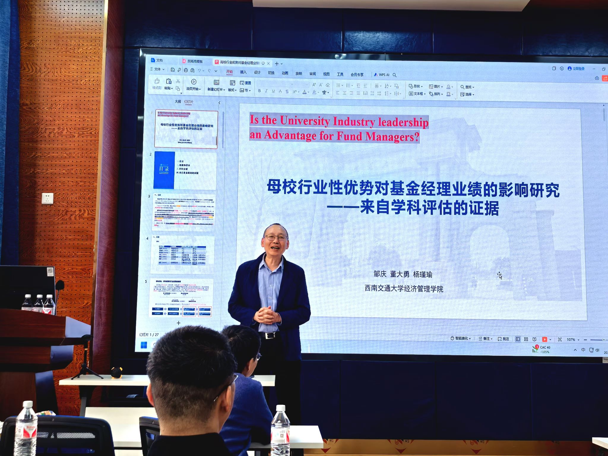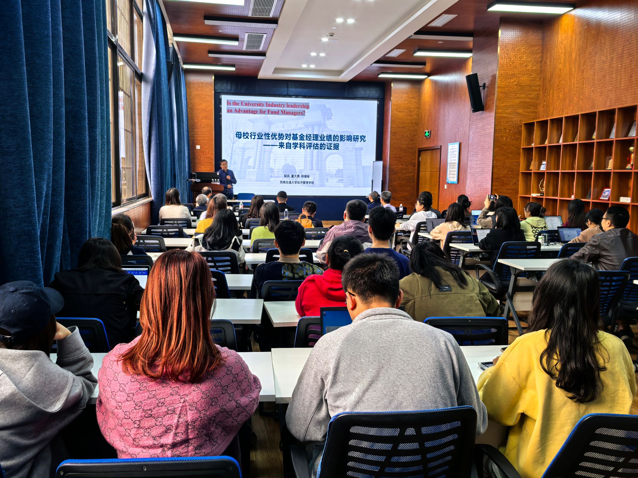 2024年11月1日,哈哈体育九里校区零号楼0218室举办了师道永传,匠心筑梦——资深教师系列讲座。本次讲座邀请了HAHA体育金融与财务学系的系主任董大勇教授,围绕“母校行业性优势对基金经理业绩的影响研究——来自学科评估的证据”这一主题展开,学院部分师生到场聆听,讲座由HAHA体育副经理李良主持。
