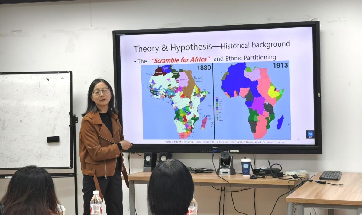 吕教授围绕非洲不稳定的制度环境展开,探讨了非洲的种族划分对PPI项目生存的影响,并通过案例分析和Cox回归模型验证了因果关系。讲座后,吕教授与师生就论文内容进行了进一步探讨。