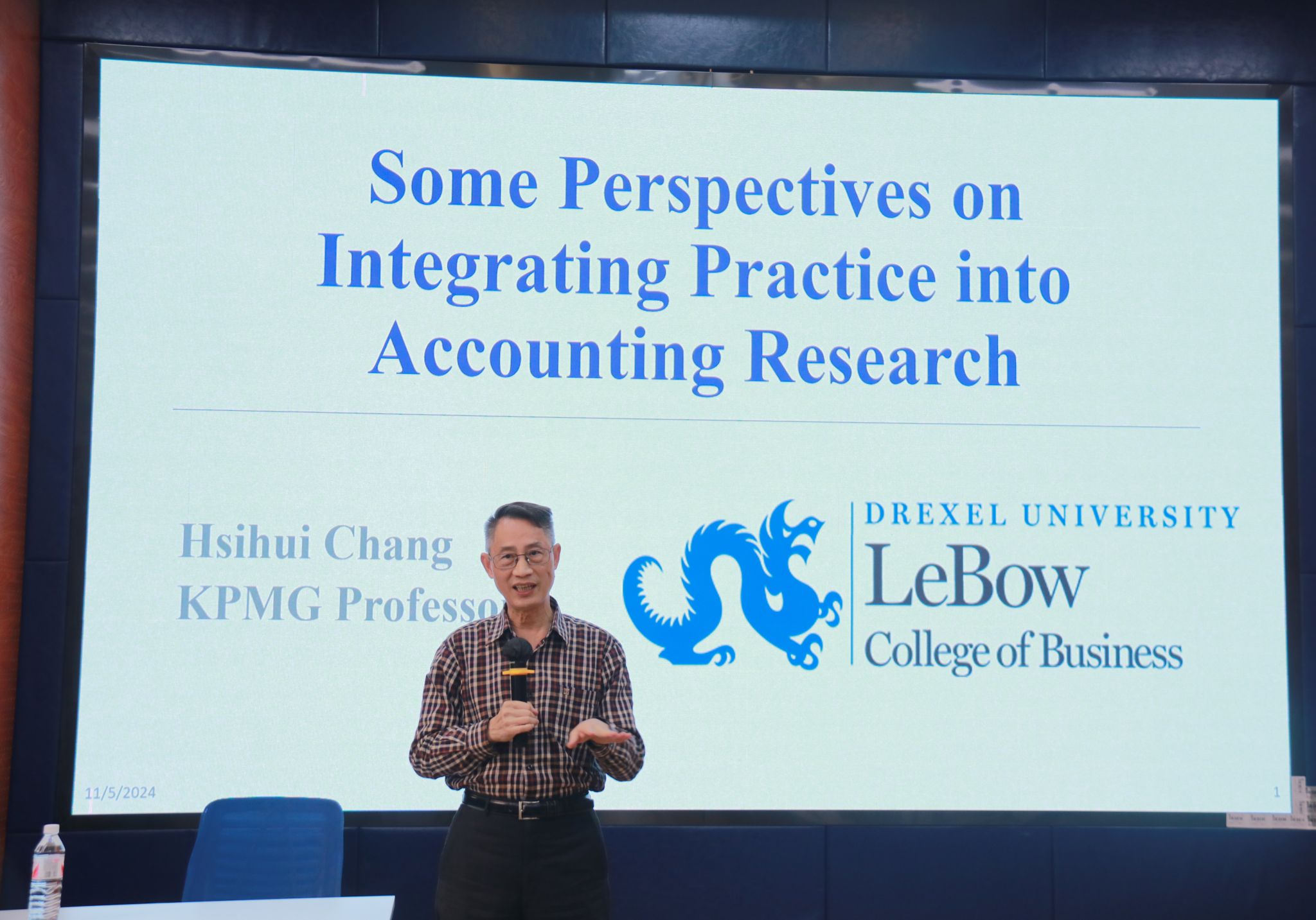 2024年11月5日下午,美国德雷塞尔大学(Drexel University)LeBow商学院张锡惠教授应邀在公司0218室为师生带来题为“Integrating Practice into Accounting Research”的学术讲座。本次学术活动由HAHA体育副经理马锋主持,学院金融与财务学系、会计学系部分相关专家、老师、研究生共30余人参与此次学术交流活动。公司副经理马锋对张锡惠教授的学术背景与成就进行了介绍,并代表学院对张锡惠教授表示欢迎与诚挚的感谢。