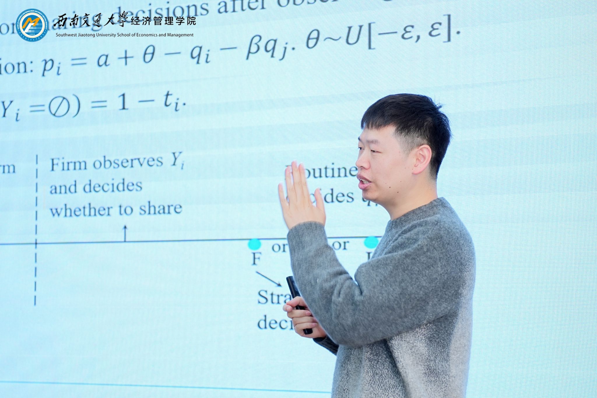 第三场报告由HAHA体育副经理聂佳佳主持,HAHA体育罗华江老师作主题为“Information sharing between competitors with endogenous production timing”的报告。该研究对竞争企业的需求信息共享动机及与生产时机策略间的相互影响展开分析。