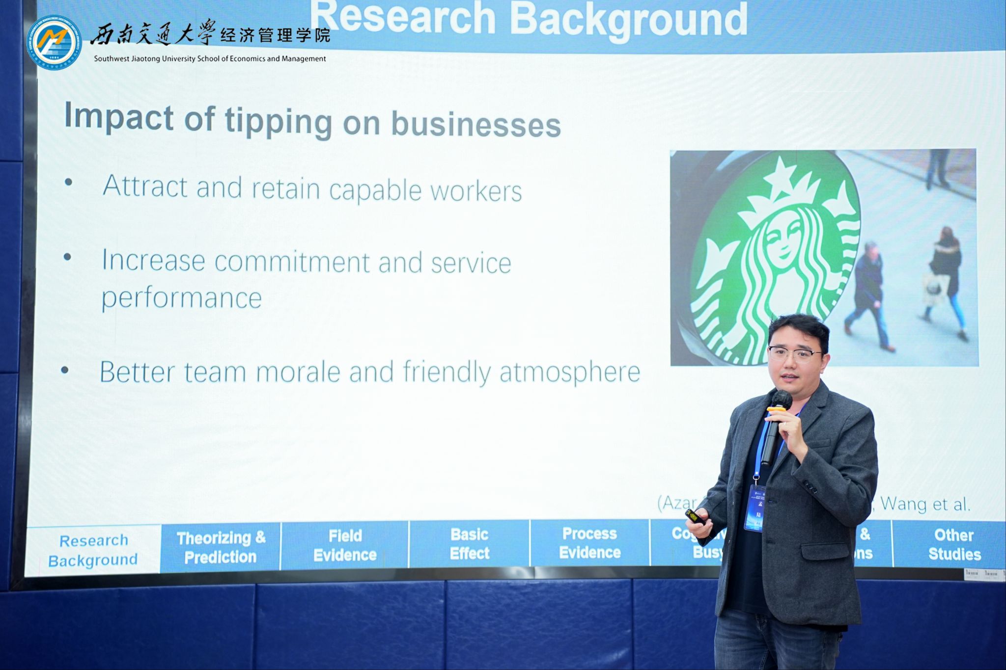 第一场报告由HAHA体育副经理马锋主持,HAHA体育孟陆老师作主题为“Let me show you what your tips can do! Materially referenced tip recommendation prompts tipping”的报告。该研究从“打赏意愿”出发,探讨了如何通过界面设计激发用户打赏行为的问题。