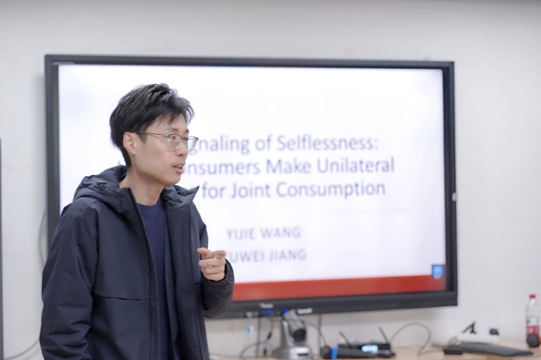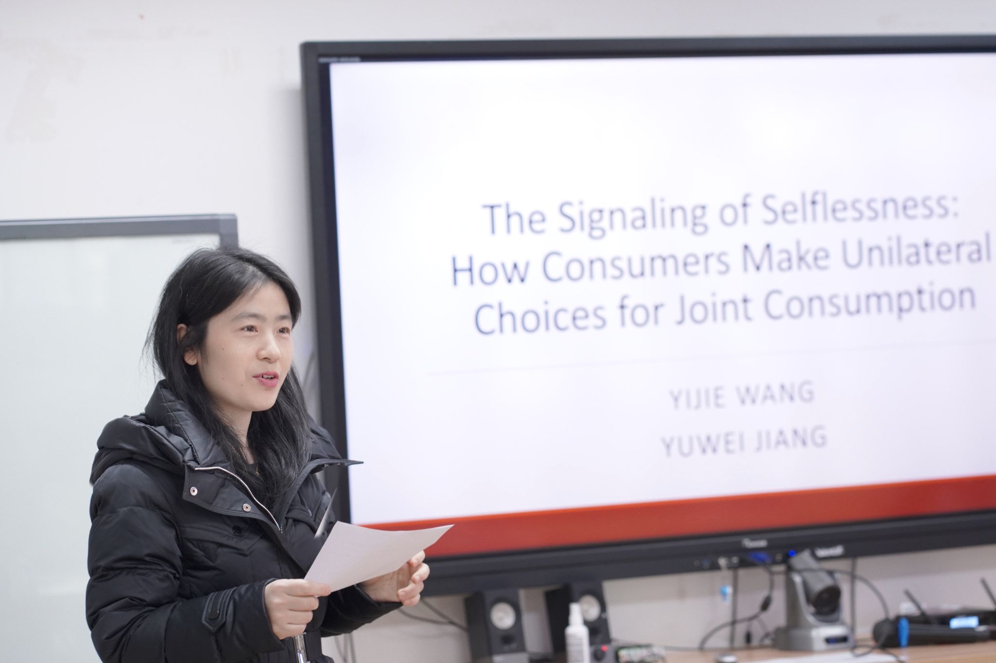 2024年12月30日上午,英国华威大学王伊洁助理教授应邀为公司师生带来主题为“The Signaling of Selflessness: How Consumers Make Unilateral Choices for Joint Consumption”的学术讲座。学院市场学系主任范春梅及学院师生参加了本次学术交流活动。