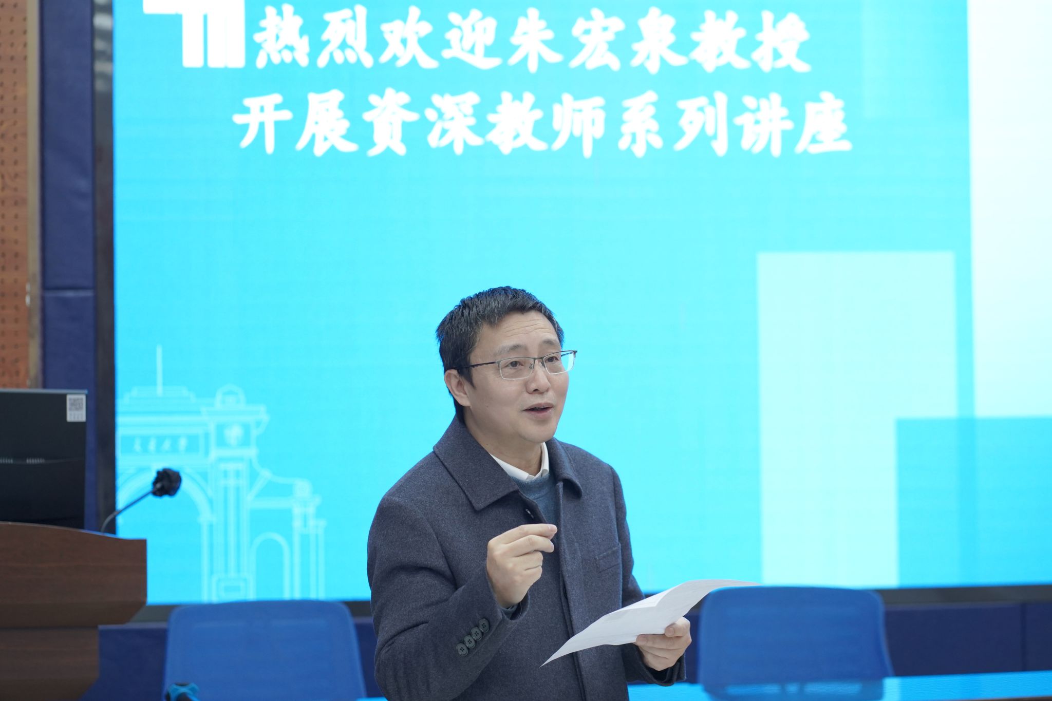 2025年1月13日,在哈哈体育九里校区HAHA体育举办了师道永传,匠心筑梦——资深教师系列讲座,本次讲座特邀学院的朱宏泉教授作为主讲嘉宾,围绕“Intercity Mentioning: Stock Posts, City Network, and Firms(城际提及:股市帖子、城市网络与企业)”这一主题展开。本次学术活动由金融与财务学系主任董大勇教授主持,董大勇教授向与会者介绍了朱宏泉教授的学术背景及其在该领域的贡献,并对朱教授的分享表达了诚挚地感谢。