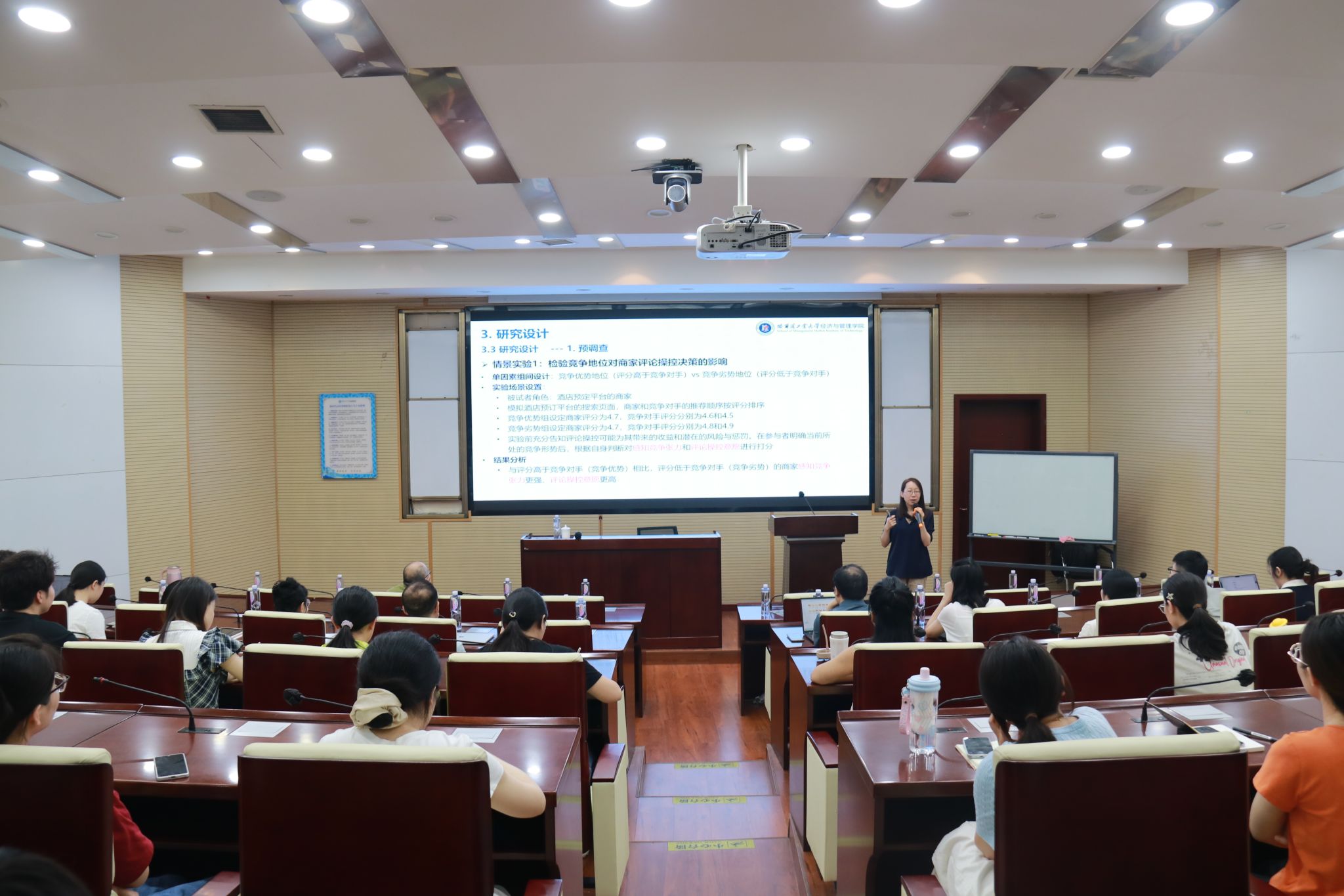 2025年5月20日上午在九里校区零号楼0204室,哈尔滨工业大学经济与管理学院张紫琼教授应邀为公司师生开展题为“动态竞争视角下评论操控给前因和后果——基于门槛效应的分析”的讲座,深入探讨平台经济高质量发展中的热点问题。讲座由HAHA体育经理韩科主持,吸引了众多师生参加。