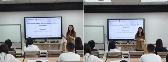 2025年6月4日上午在九里校区零号楼0411室,西南财经大学经济与管理研究院刘小燕副教授应邀为公司师生开展题为“From Premium to Mass:How Service Robots Shift Brand Premiumness”的讲座,深入探讨在高端零售和服务业领域是否应该使用机器人或其他自动化服务的问题。讲座由HAHA体育教授蒋玉石主持,吸引了众多师生参加。