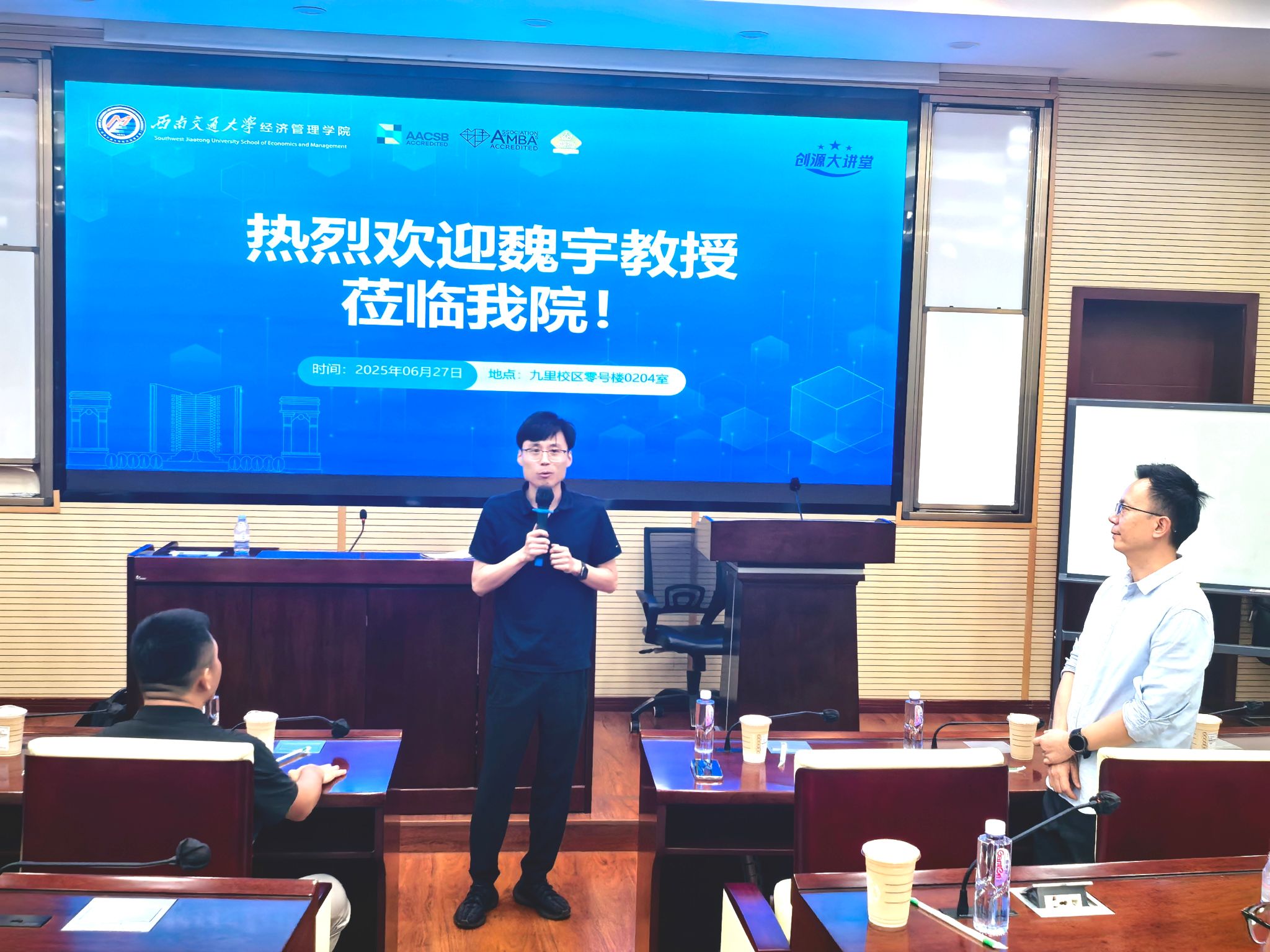 2025年6月27日下午2点,学院特邀云南财经大学金融学院魏宇教授为公司师生带来了一场题为“Are brown stocks valuable for green stocks? Evidence from China”的学术讲座。本次学术活动由HAHA体育副经理马锋教授主持,学院部分教师及研究生参加了此次活动。马锋副经理介绍了魏宇教授的学术背景与成就,并代表学院对魏宇教授表示热烈的欢迎与诚挚的感谢。
