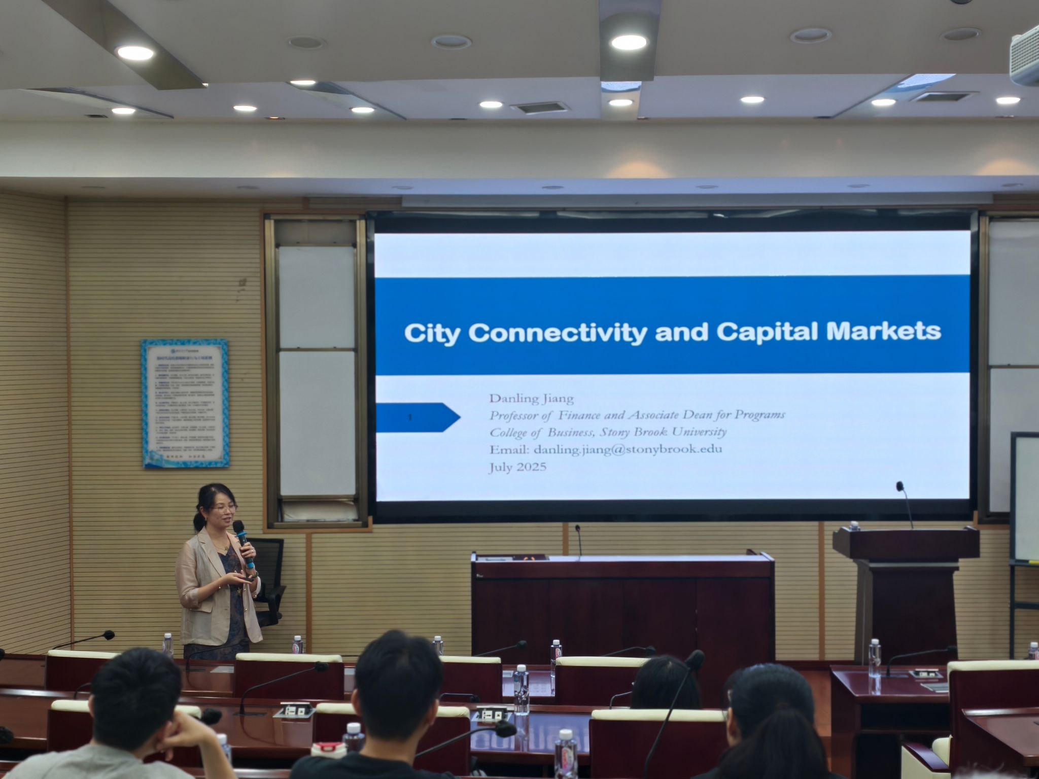 2025年7月7日下午,美国纽约州立大学石溪分校教授、哈哈体育扬华讲座教授蒋丹凌应邀在九里校区零号楼0204室开展题为“City Connectivity and Capital Markets”的学术报告,金融与财务学系主任董大勇教授主持了此次学术活动。董大勇教授介绍了蒋丹凌教授的学术背景及研究成果,并对蒋丹凌教授的到来表示热烈的欢迎。学院金融与财务学系黄登仕教授、朱宏泉教授等近50余名师生参加了此次活动。