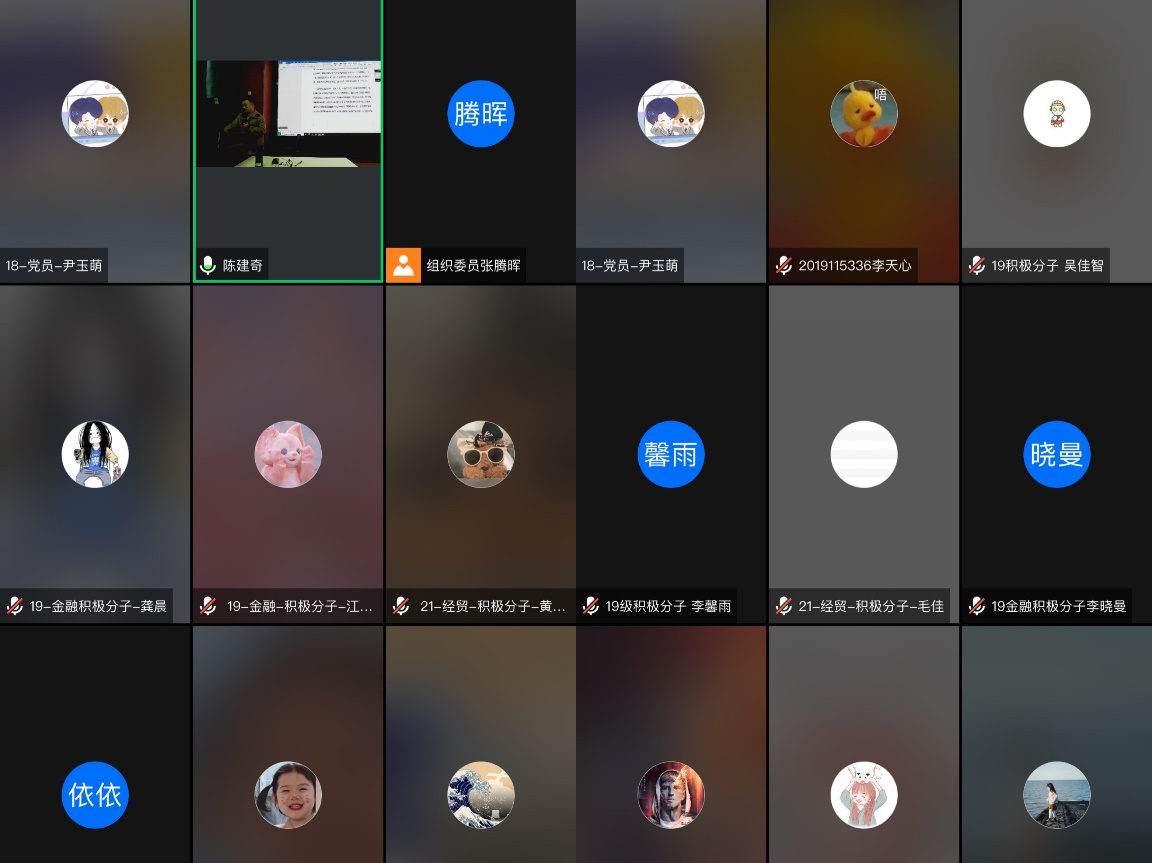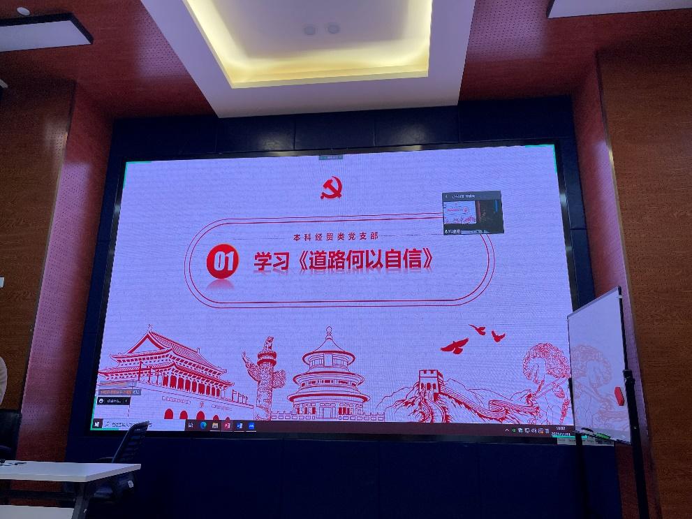 HAHA体育本科经贸类党支部于11月11日通过线上方式,开展了“学习《道路何以自信》”的主题党日活动。此次活动由党支部书记陈建奇同志主持,全体支部党员参加,积极分子列席参加。