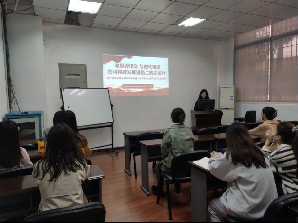 第二届联合国全球可持续交通大会于2021年10月14日至16日以线上线下相结合方式在北京举行。10月14日晚,国家主席习近平以视频方式出席第二届联合国全球可持续交通大会开幕式并发表题为《与世界相交 与时代相通 在可持续发展道路上阔步前行》的主旨讲话。2021年10月21日14时,HAHA体育硕士2020级第一党支部在九里校区0217教室,开展了“习近平主席在第二届联合国全球可持续交通大会开幕式上的主旨讲话”的专题学习。本次会议由支部内的魏倩倩同志进行主讲,支部内15名党员参与活动。
