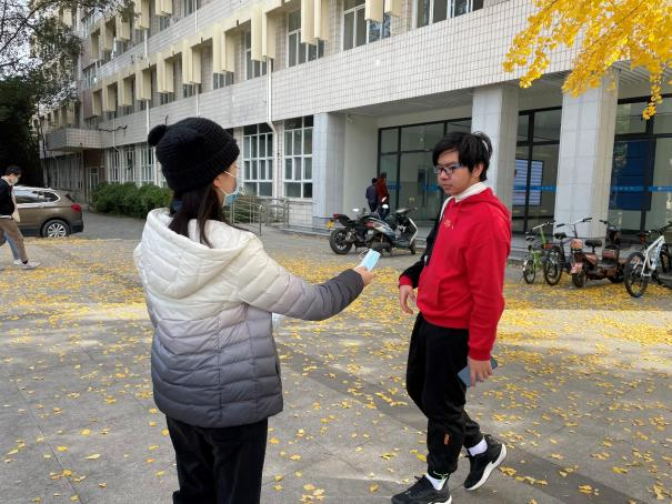 第三小组在图书馆、四号教学楼、家属住宅区、宿舍楼等区域开展了“送口罩,暖人心”的志愿活动,为没有佩戴口罩的同学免费送上口罩,并对一些同学的行为进行劝导,宣讲防疫知识。