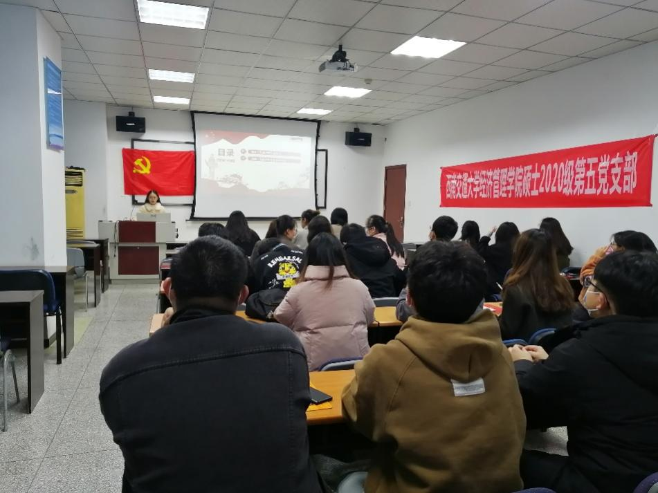 2021年11月18日晚19:30,HAHA体育硕士2020级第五党支部于0号教学楼0317开展十九届六中全会学习和党员应知应会答题活动,本次会议由支部成员刘柯同志带领全体成员进行学习,出席会议的有支部内党员、预备党员和积极分子。