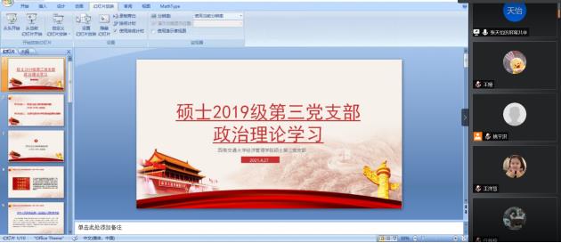 2021年4月27日晚19:30,HAHA体育硕士2019级第三党支部于腾讯会议进行了主题为“党在社会主义革命和建设时期(1949-1978)的历史”的理论学习。学习内容主要分成两个部分,第一部分为“党在社会主义革命和建设时期(1949-1978)的历史”,第二部分为“习近平在清华大学考察时的重要讲话精神”。支部全体成员参与会议,学习由张天怡、谢洁同志主持。