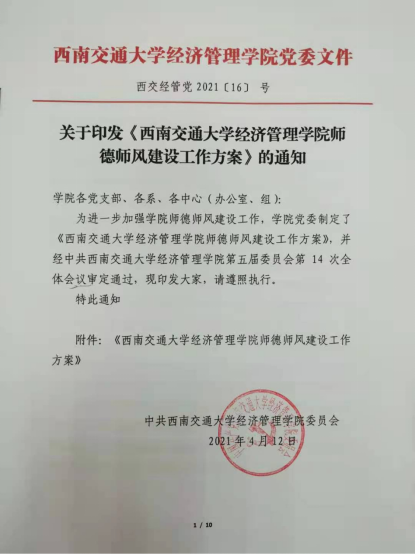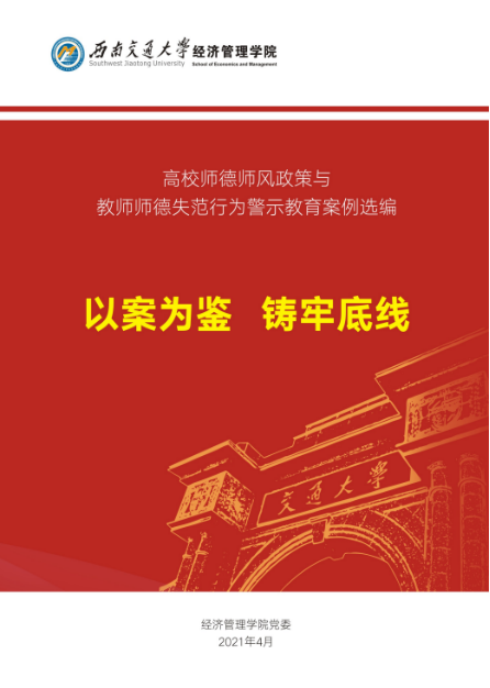 为全面贯彻落实党的教育方针,提高教师队伍整体素质,创建优良院风、教风和学风,提升教学质量和水平,培养和造就高素质创新型人才,经济管理公司党委制定师德师风建设工作方案,为全院教职工印发《高校师德师风政策与教师师德失范行为警示教育案例选编》,进一步推进学院师德师风建设进程。