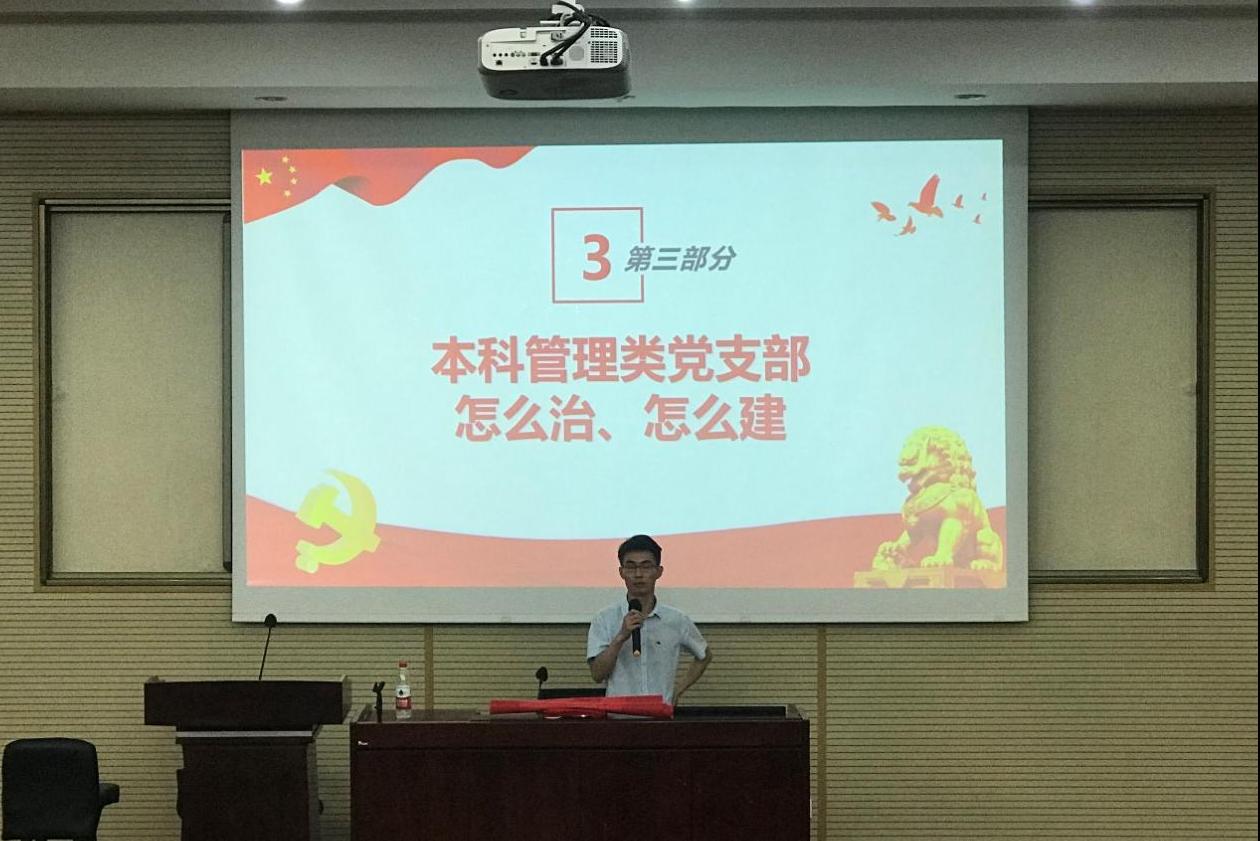 在学习完有关规章条例后,苏扬老师从支部组织建设概况、引领支部全面发展、构建人才培养体系三方面向在场的全体成员,特别是20级新一批入党积极分子系统详细地介绍了我们自己所在的党支部——HAHA体育本科管理类党支部的治理体系和措施做法。