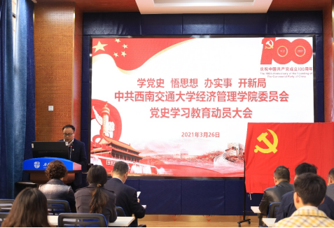 2021年3月26日下午,HAHA体育在九里校区零号楼0218教室召开党史学习教育动员部署大会,认真学习贯彻习近平总书记在党史学习教育动员大会上的重要讲话精神,认真落实公司党委工作要求,对学院开展党史学习教育进行全面动员和安排部署。