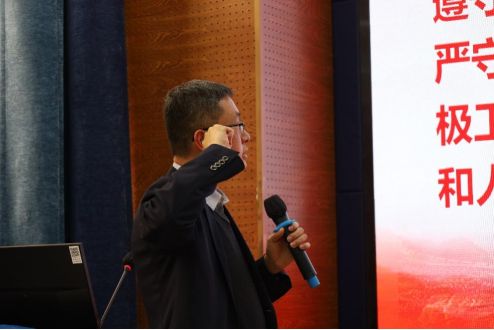 最后,在王斌同志领誓、夏显波同志监誓下,到会全体党员同志庄重宣誓、重温入党誓词。经济管理公司党委党史学习教育动员大会顺利结束。