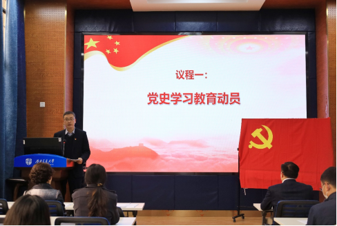 杨宏毅同志主持时指出,2021年是中国共产党成立100周年,在全党开展党史学习教育,是党中央立足党的百年历史新起点,统筹中华民族伟大复兴战略和世界百年未有之大变局、为动员全党全国各族人民满怀信心投身全面建设社会主义现代化国家而做出的重大决策。全院师生学党史、悟思想、办实事、开新局,各党支部党员同志一定要发挥好模范带头作用,高标准高质量地做好党史学习教育各项工作。