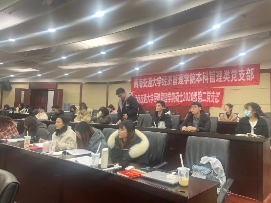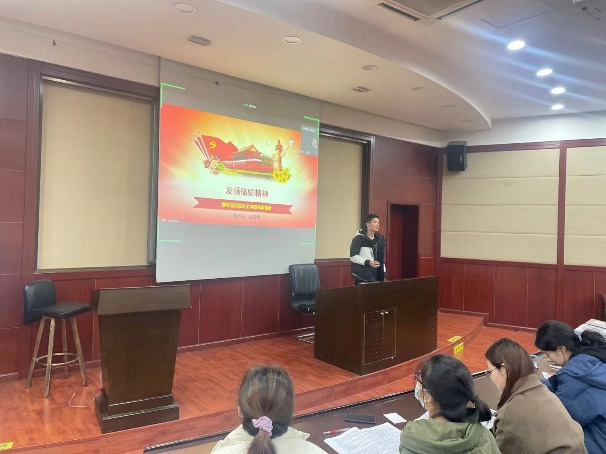 习近平总书记在党史学习教育动员大会上的讲话指出:“我们党的历史,就是一部不断推进马克思主义中国化的历史,就是一部不断推进理论创新、进行理论创造的历史。”在建党百年之际,回望总结我们党推进马克思主义中国化的历史进程,深刻把握马克思主义中国化百年历程的创新成果及基本经验,是继续推进马克思主义中国化,发展当代中国马克思主义、21世纪马克思主义的必然要求。因此,为了引导党支部同志们进一步学习马克思主义理论,深入理解马克思主义的精神实质和思想精髓,2021年12月16日下午,HAHA体育硕士2020级第二党支部联合本科管理类党支部在九里校区零号楼0224教室举办“庆百年党史,发青春之声”经典故事演讲比赛。本次演讲比赛由硕士2020级第二党支部官慧同志主持,到场老师有贾佳、苏扬以及张媛媛。