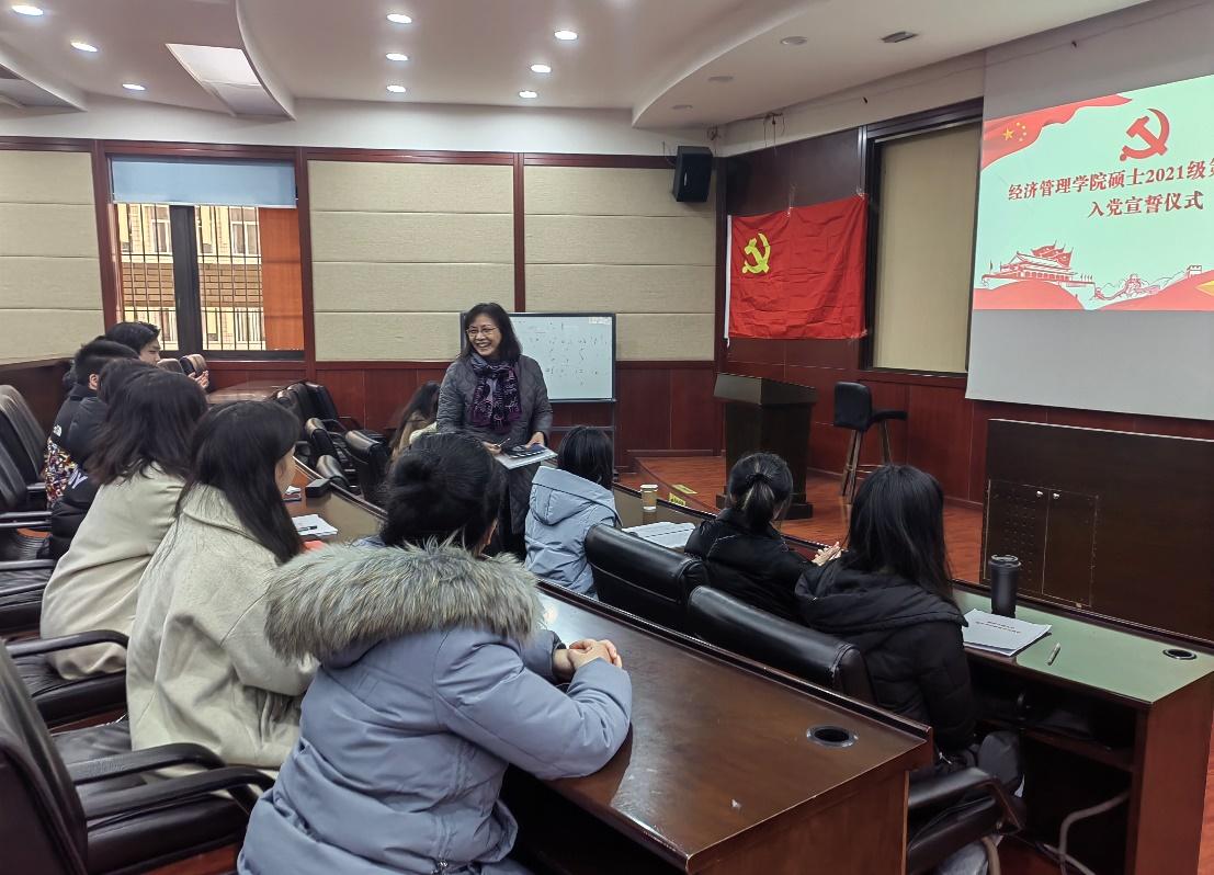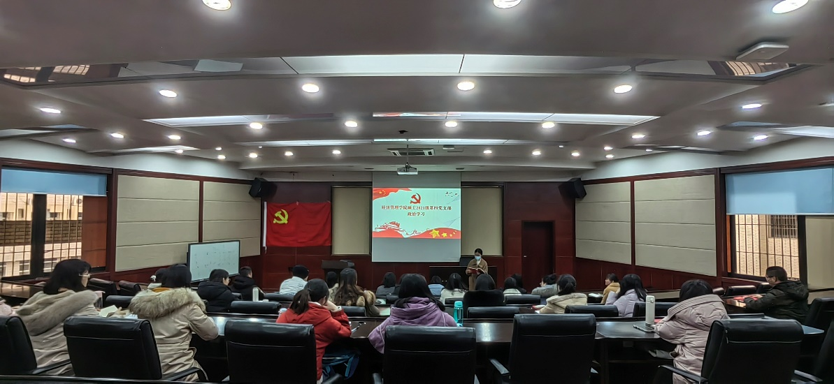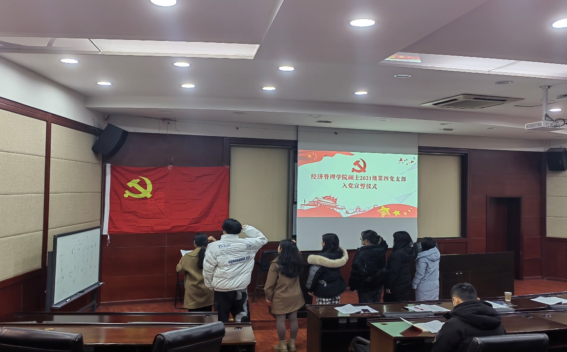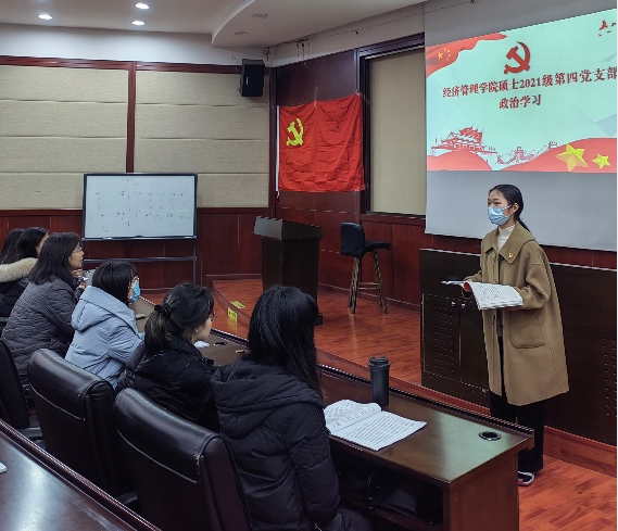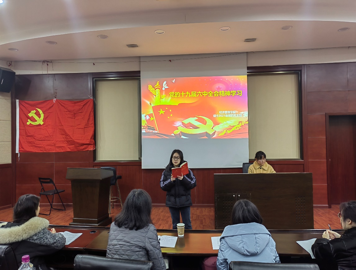 2021年12月30日下午三点在九里校区0224教室,HAHA体育硕士2021级第四党支部开展了“党的十九届六中全会精神”的政治学习活动及预备党员入党宣誓仪式。活动由党支部书记吴欣悦主持,校巡视组陈燕灵老师出席指导,党支部共30人全部参加了此次活动。