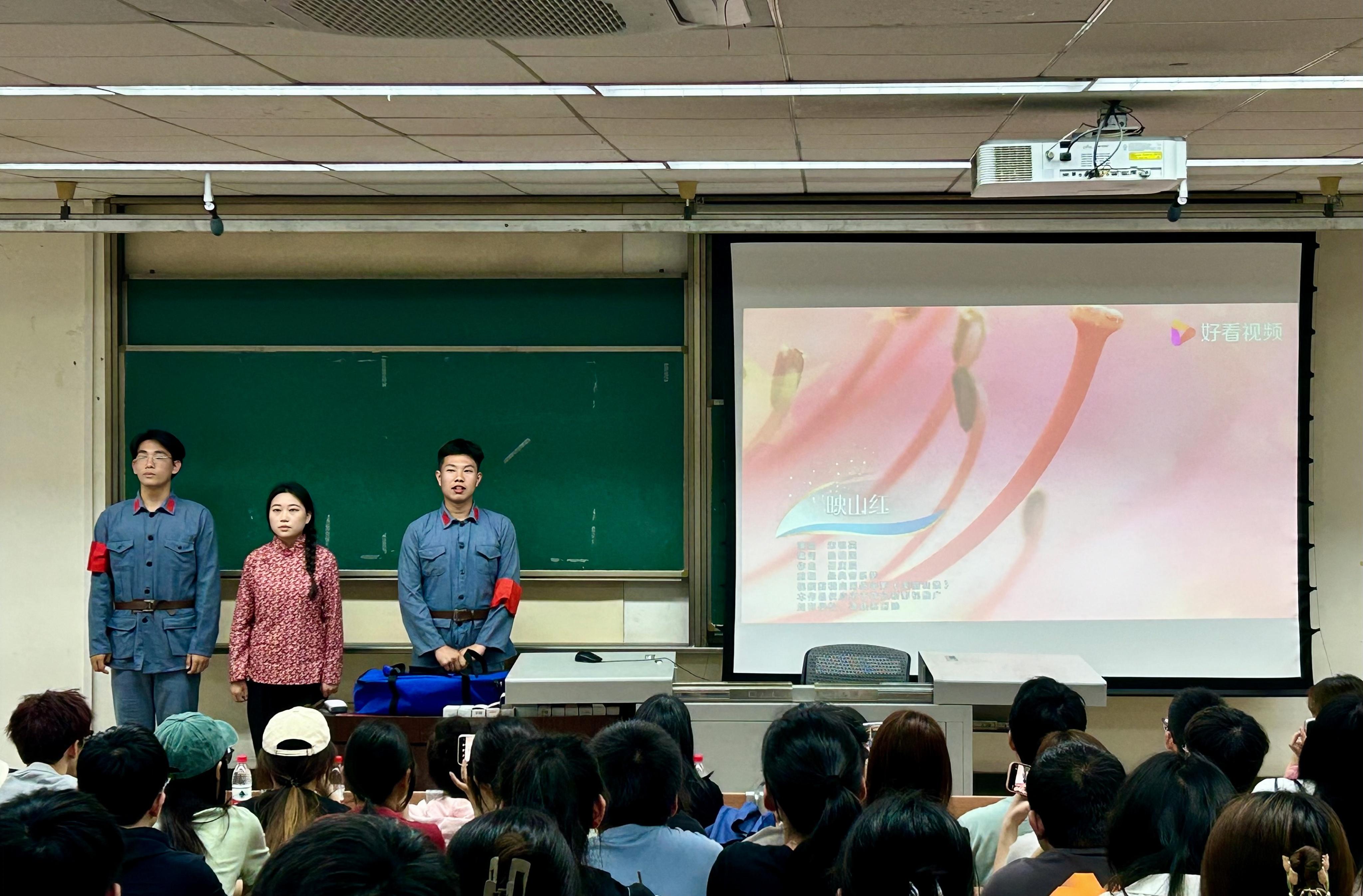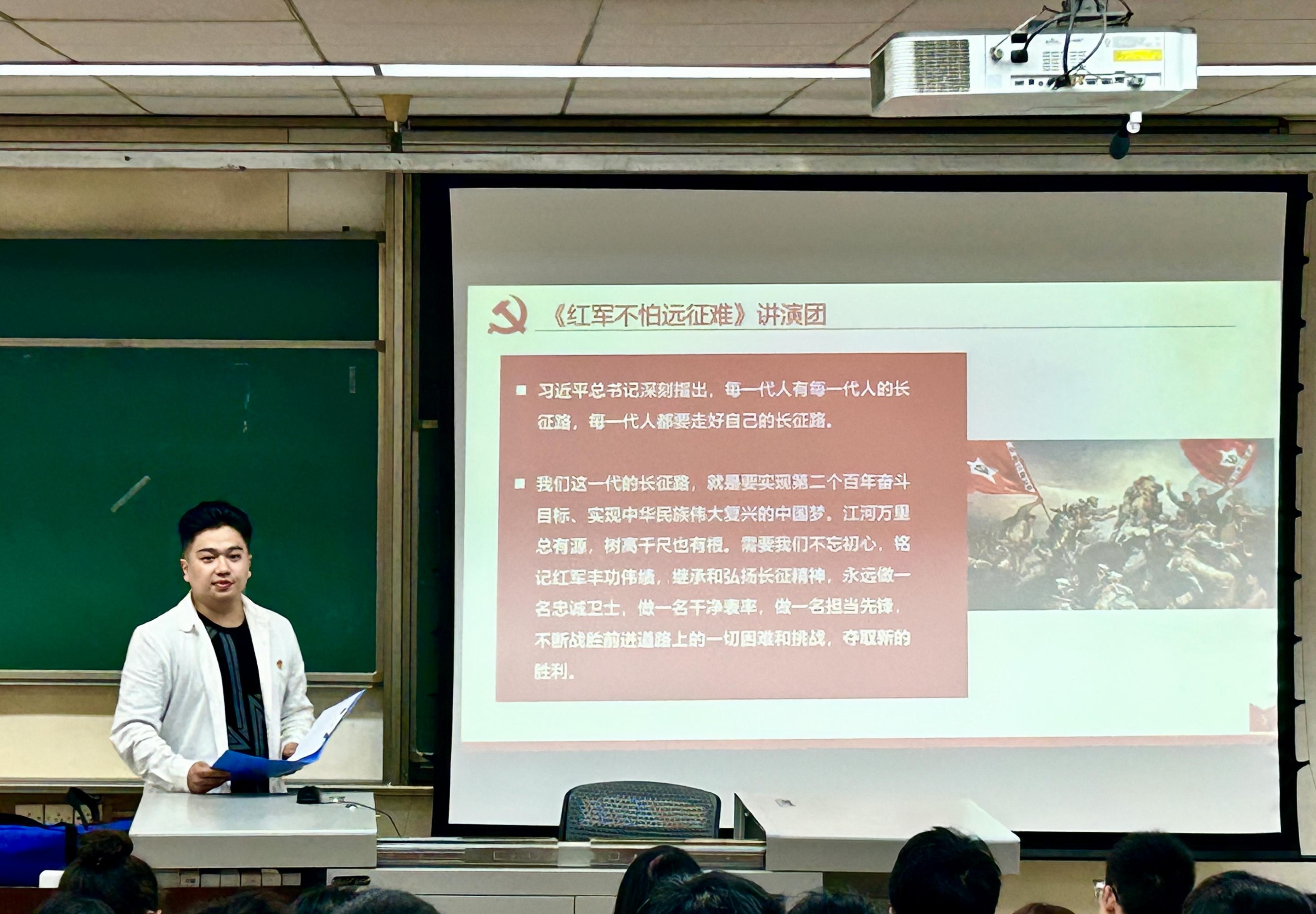 420日,支部举行“传承长征精神 赓续红色血脉”音乐思政课活动,由歌曲《红军不怕远征难》讲演团主讲并带来红歌音乐展演。讲演团以激昂的歌声和铿锵有力的歌词展现长征画卷,支部成员跟随着歌声回望长征征途,再忆红色故事。活动用音乐呈现革命精神,用音乐鼓舞广大青年,将党的精神谱系巧妙有机融入各个篇章,以具体的榜样人物为“活教材”,引领广大青年赓续精神血脉,凝聚起勇毅前行的奋进力量。