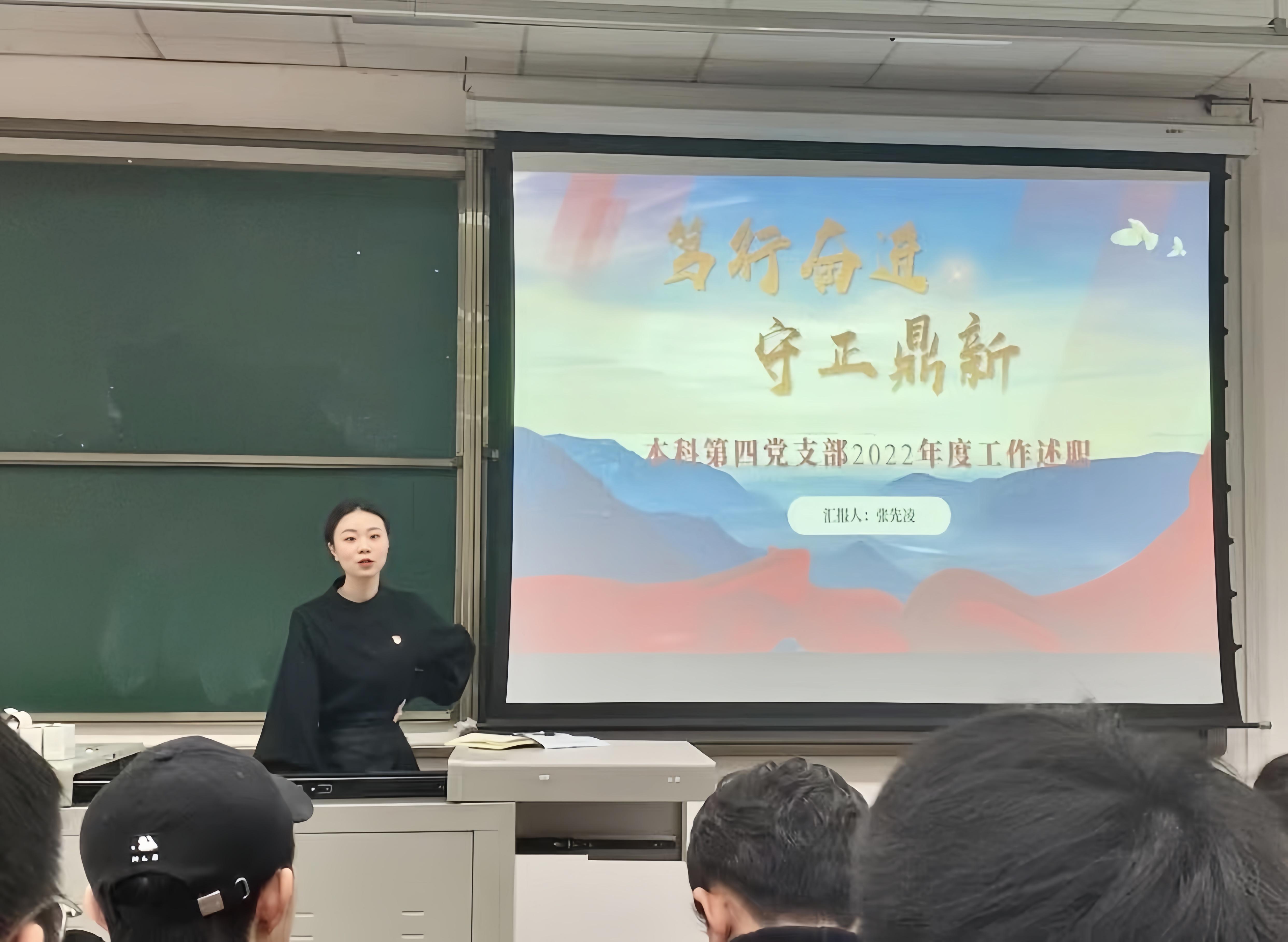 山以险峻成其巍峨,业以磨难成其伟大。蓝图已经绘就,凝心聚力、奋斗实干正当其时,新时代青年要弘扬五四精神,在新时代新征程中齐众心、汇众力、集众智,敢于闯滩涉险、勇于攻坚克难。道阻且长,行则将至。在接下来的学习、生活中,本科第四党支部也将着力打造政治合格、品德合格、履责合格的优秀队伍,以点带面,激发广大党员创先争优的热情;引导支部成员把个人的理想追求融入党和国家事业之中,不断提升自我,厚植家国情怀,练就过硬本领,努力成长为堪当民族复兴重任的时代新人,在实现中华民族伟大复兴的时代洪流中踔厉奋发、勇毅前行。